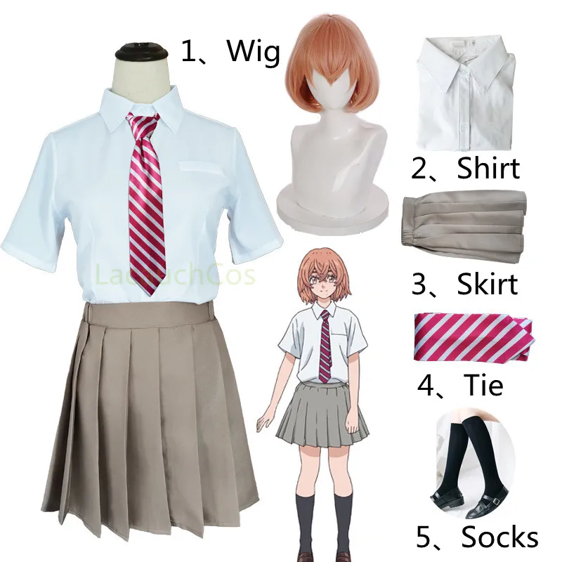 аниме tokyo revengers Tachibana Hinata Костюмы для косплея JK школьная форма костюм Shirt Tie Skirt Socks Wig хэллоуин аниме одежда