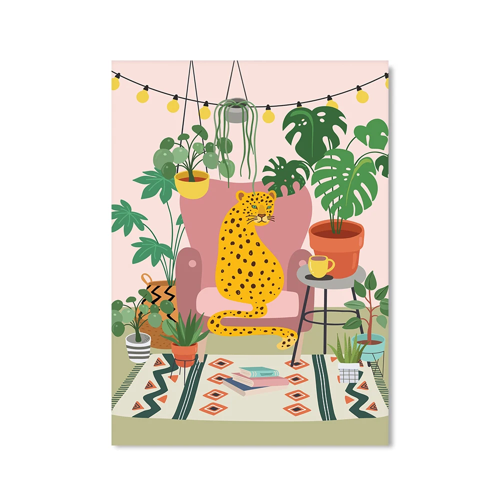 Плакат в стиле бохо, свиммер, гепард, тропический лес, холст, живот...