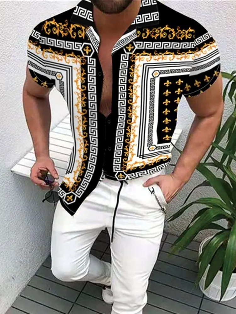 Летняя мужская Повседневная рубашка с принтом в национальном стиле ...