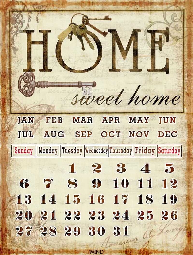 Металлический Настенный декоративный календарь, жестяное украшение для спальни, кухни, сада, гостиной, винтажного дома