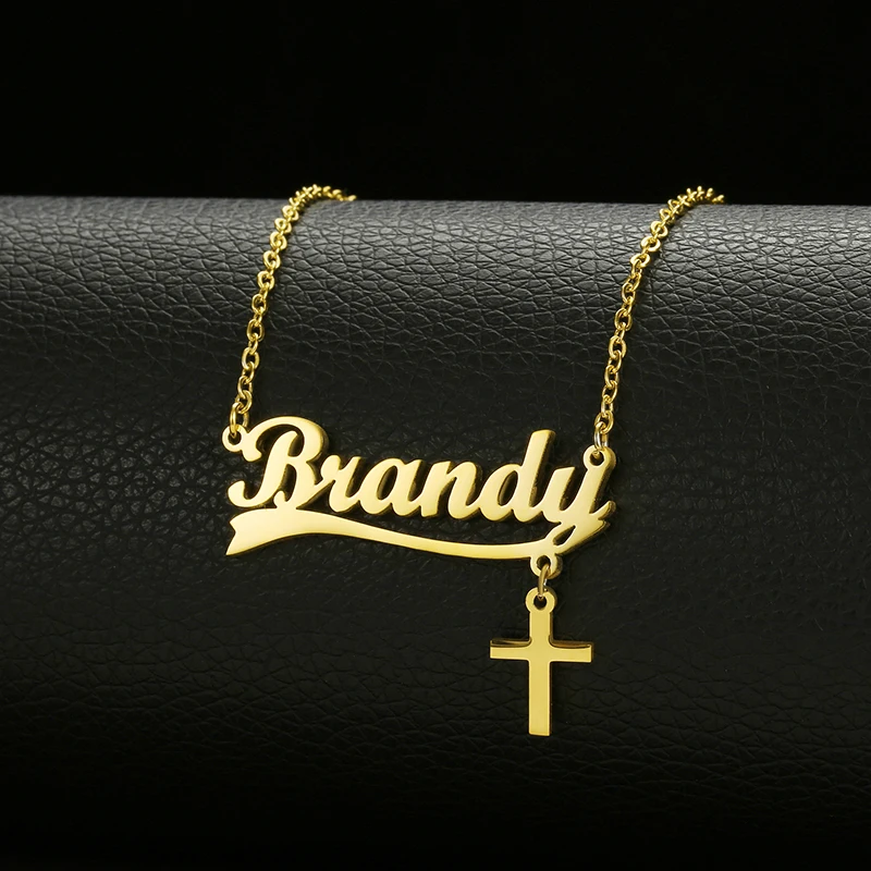Ожерелье из нержавеющей стали с подвеской с большим именем, позолоч...