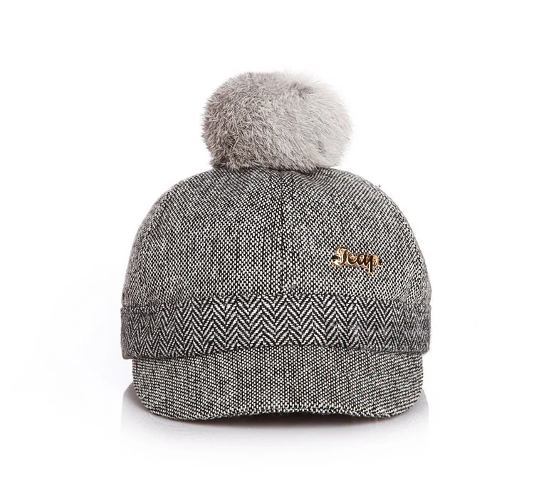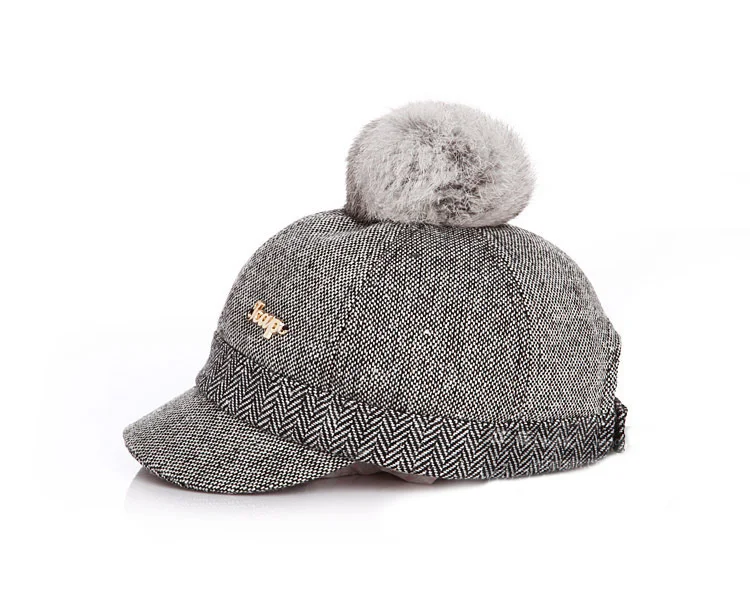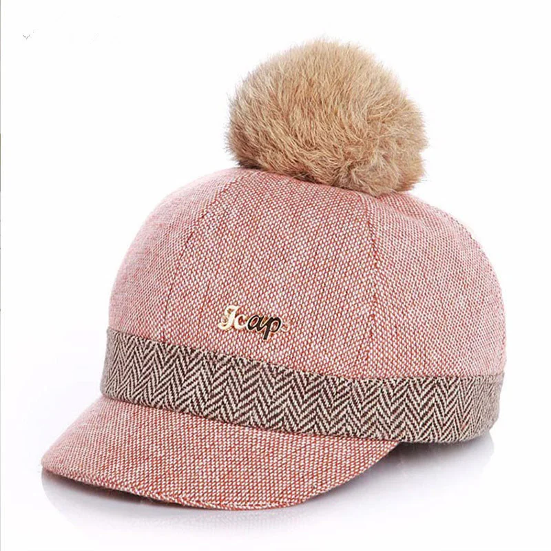 Теплая детская зимняя бейсбольная Кепка из 100% натурального кроличьего меха, спортивная шапка для гольфа, Детская Зимняя кепка для наездника с помпоном для девочек и мальчиков