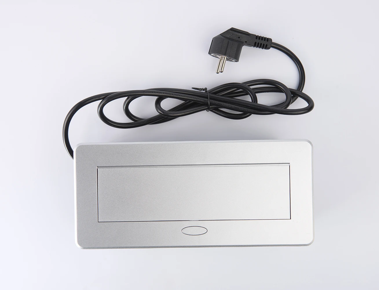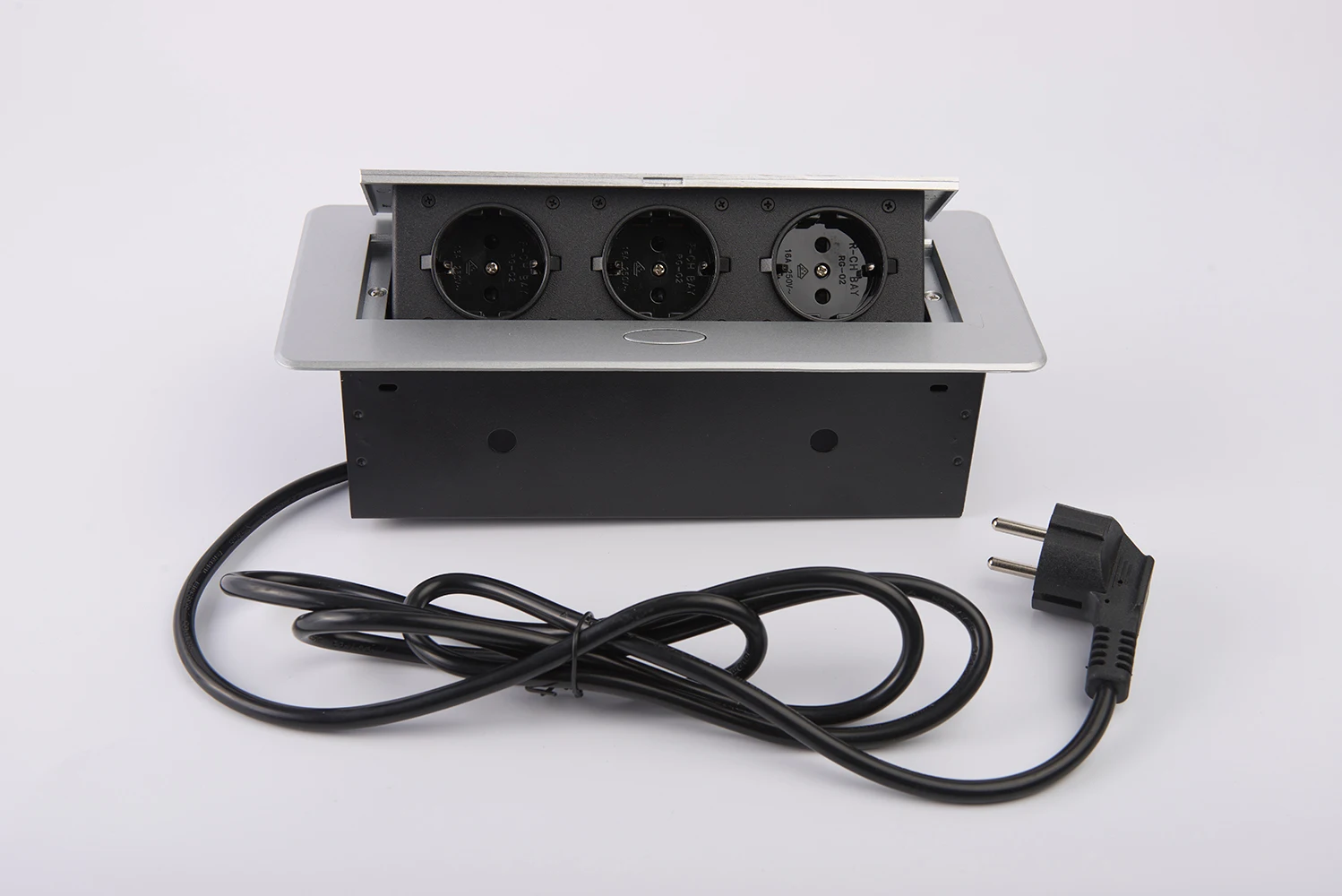 Встраиваемая выдвижная розетка, розеточный блок для столешницы, стола, мебели, TORO GRAY на 3 розетки. Цвет: серебристый/серый. Гарантия на всю нашу продукцию 2 года.