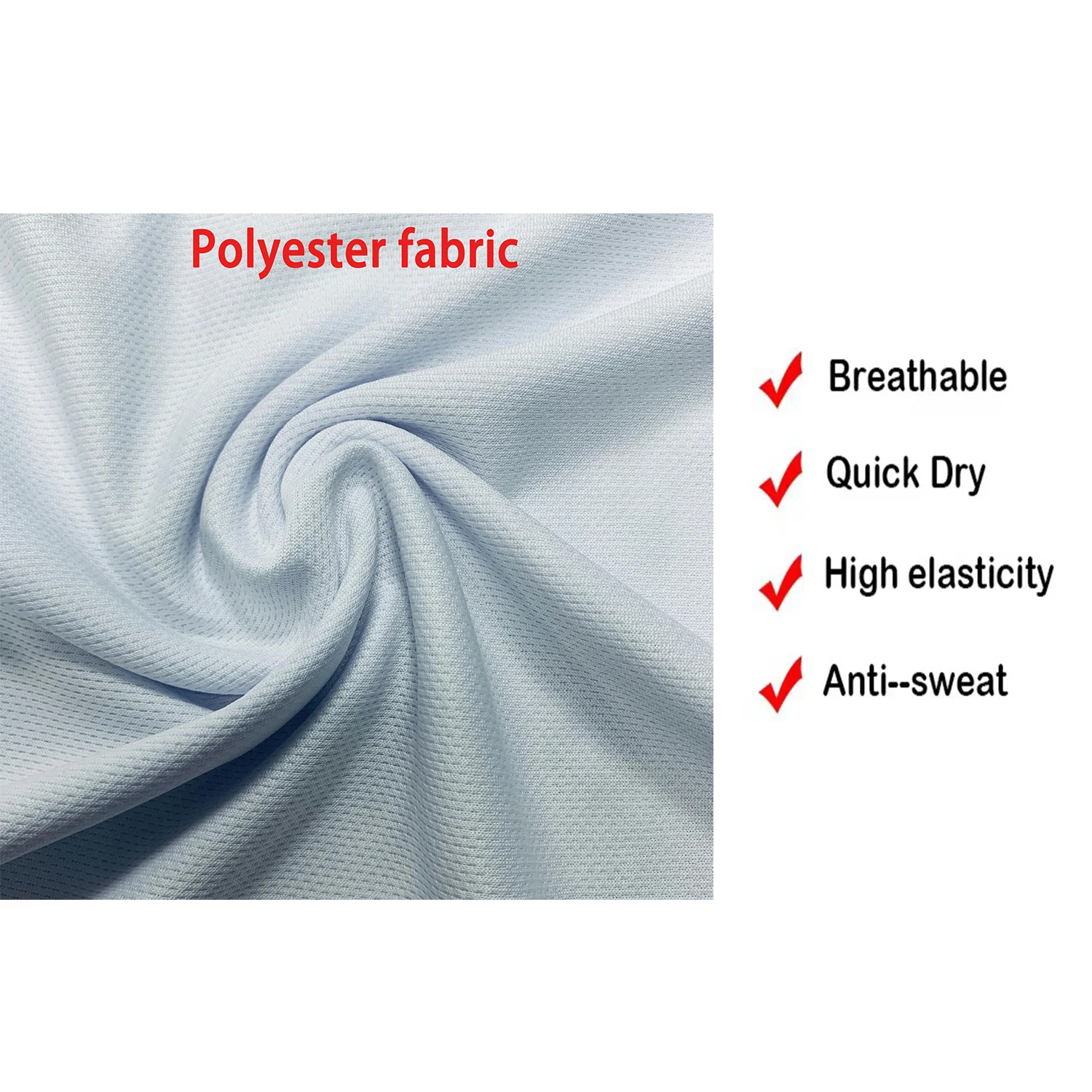 Ткань, которую мы используем, состоит из полиэстера, который обладает характеристиками поглощения пота, впитывания пота, защиты от ультрафиолета, уменьшения сопротивления, воздухопроницаемости, светильник, легко моется и не скатывается. Напоминание: если вам нужны другие ткани для того же продукта, вы можете связаться с нами, чтобы сделать заказ
