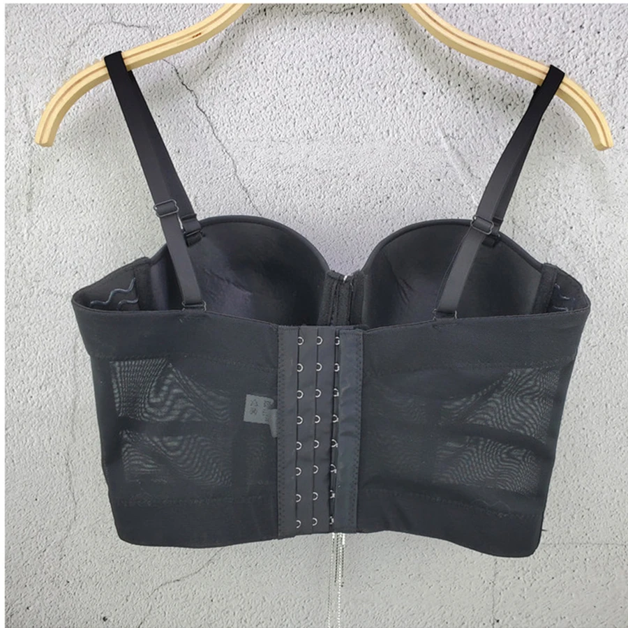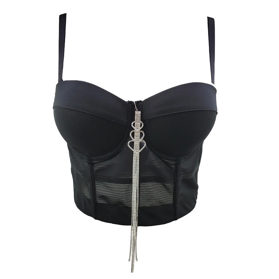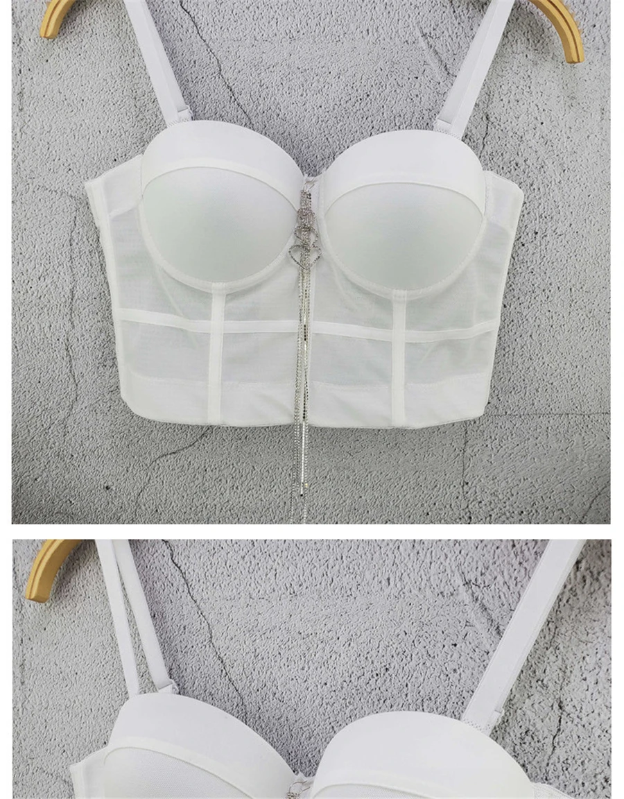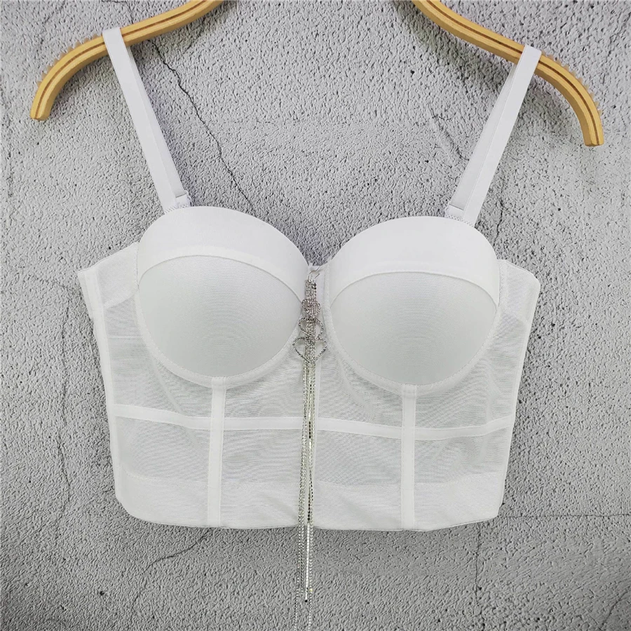 Летний укороченный топ, сексуальные сетчатые стразы, на тонких бретелях, женский укороченный топ для ночного клуба, вечеринки, корсет с эффектом пуш-ап, бюстье, майка, встроенный бюстгальтер