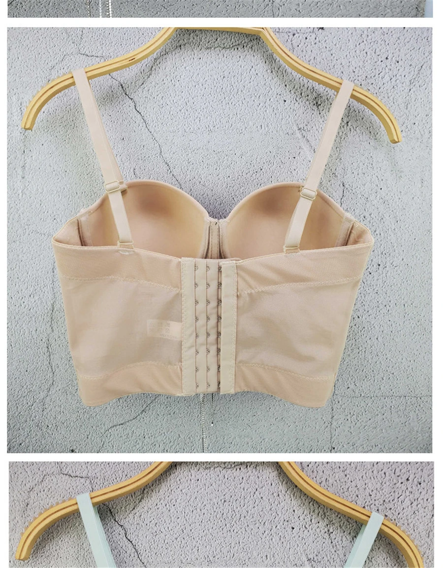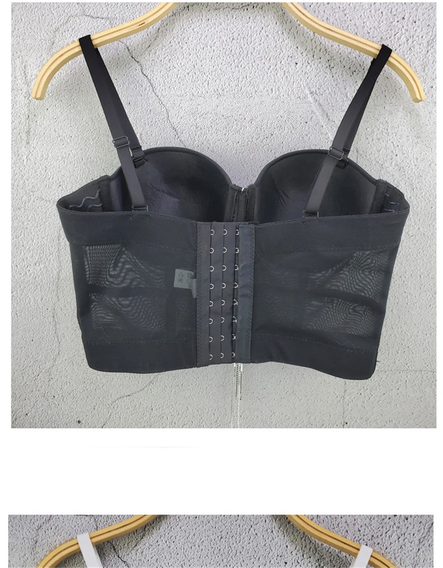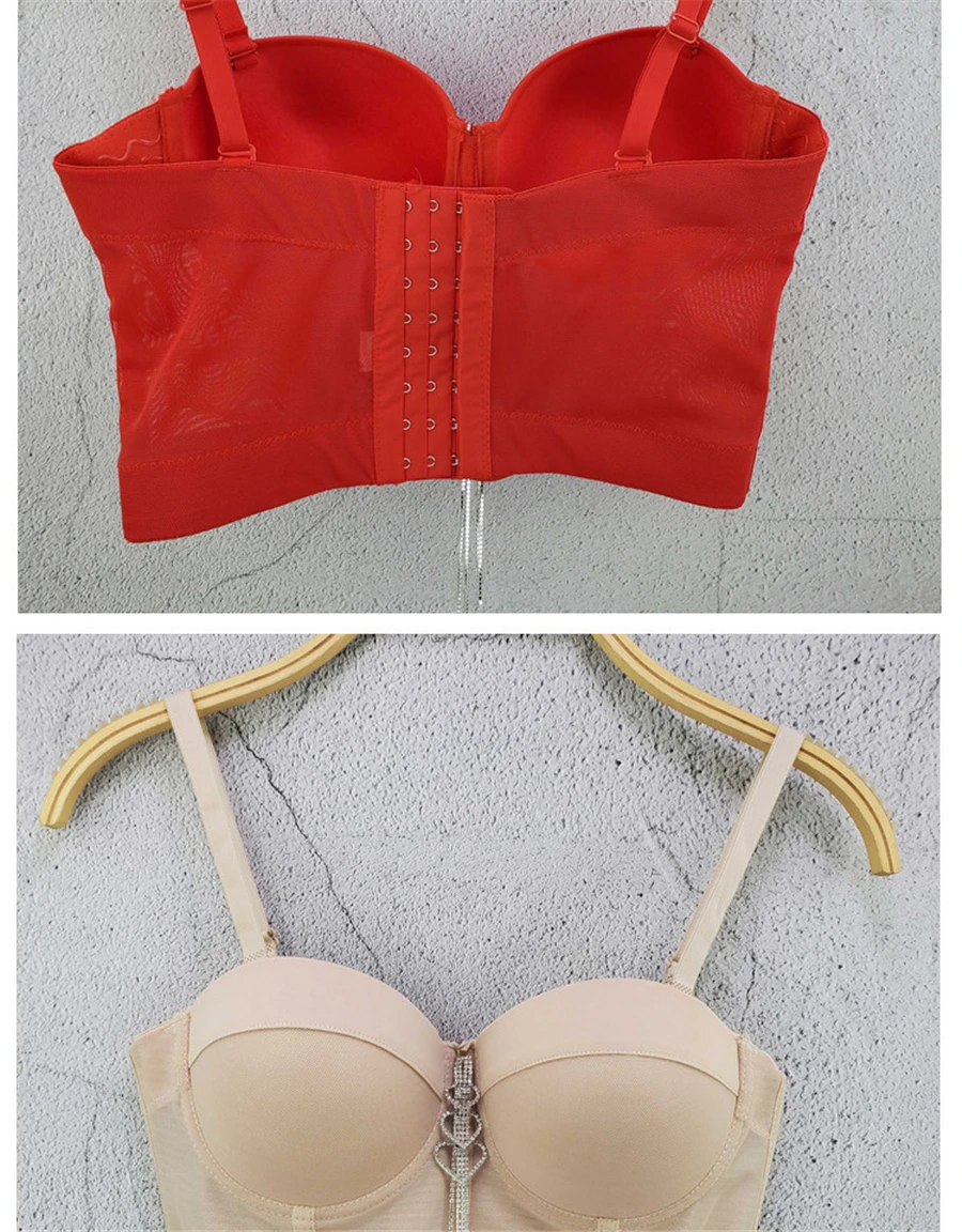 Летний укороченный топ, сексуальные сетчатые стразы, на тонких бретелях, женский укороченный топ для ночного клуба, вечеринки, корсет с эффектом пуш-ап, бюстье, майка, встроенный бюстгальтер