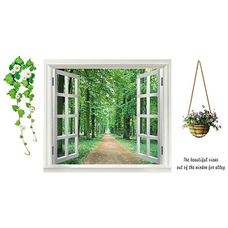 Настенные виниловые 3d наклейки с изображением гор, воды, природных пейзажей, поддельных окон, украшение для дома, цветок, виноград, пейзаж, плакат, обои 90*60 см