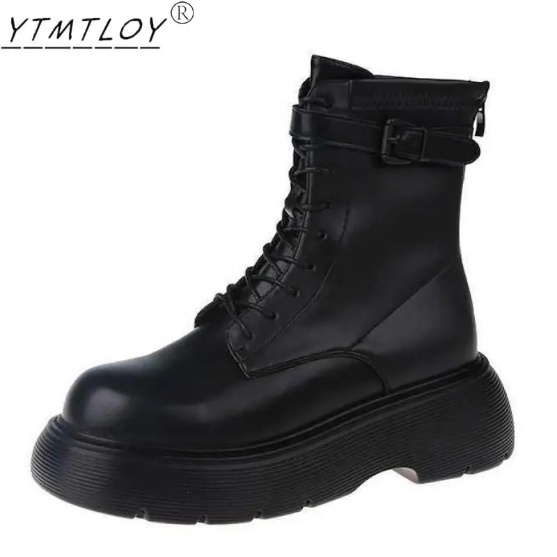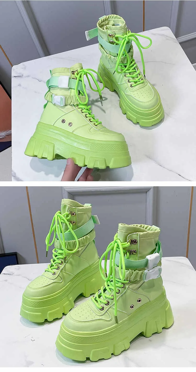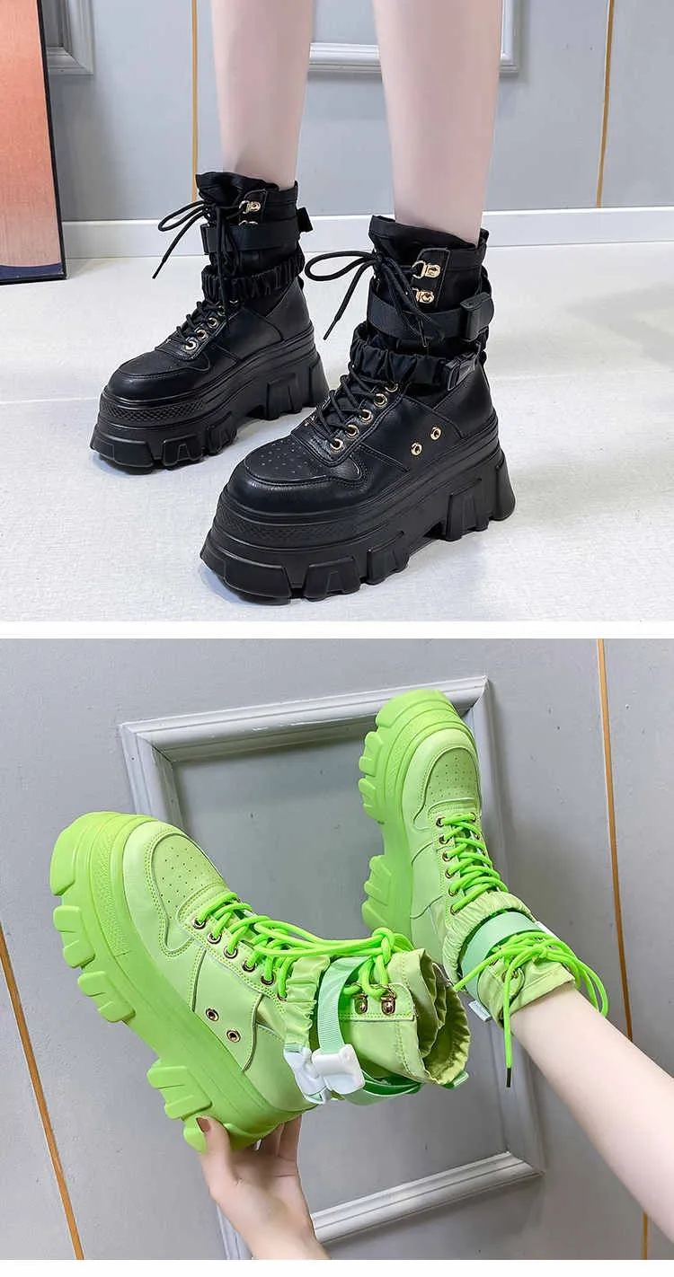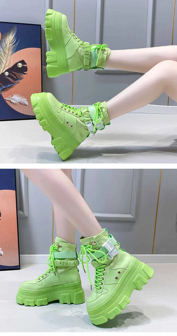 Женские сапоги, увеличивающие рост, на толстой подошве, на танкетке, со шнуровкой, декоративная женская обувь, модные зимние женские сапоги, 2022