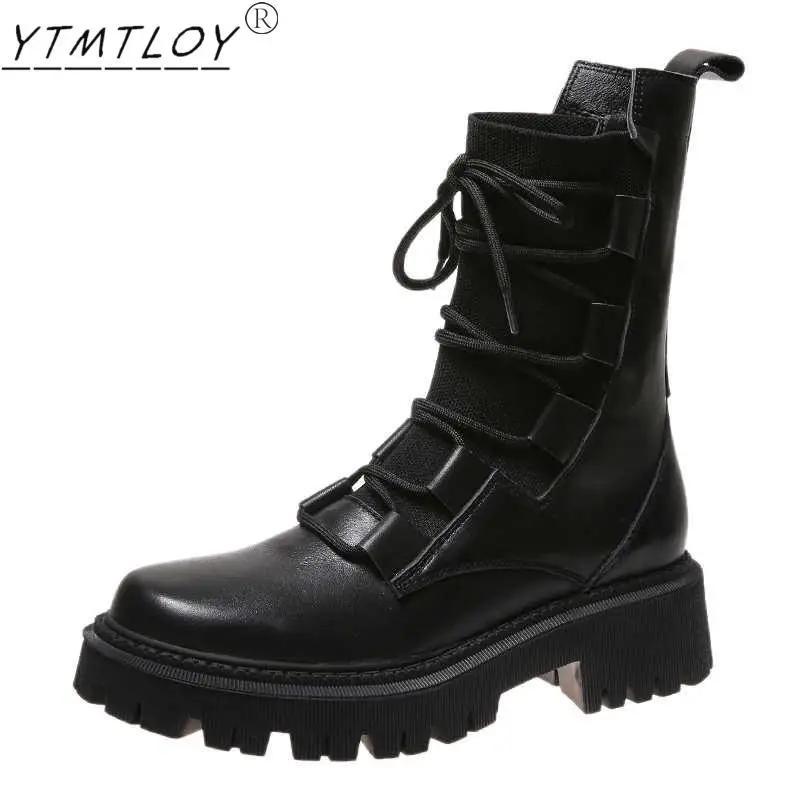 Женские мотоциклетные ботинки до середины икры, из мягкой овечьей к...