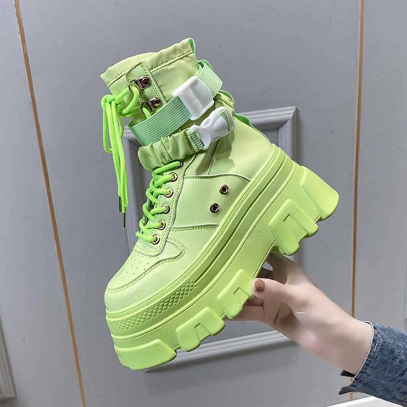Женские сапоги, увеличивающие рост, на толстой подошве, на танкетке, со шнуровкой, декоративная женская обувь, модные зимние женские сапоги, 2022
