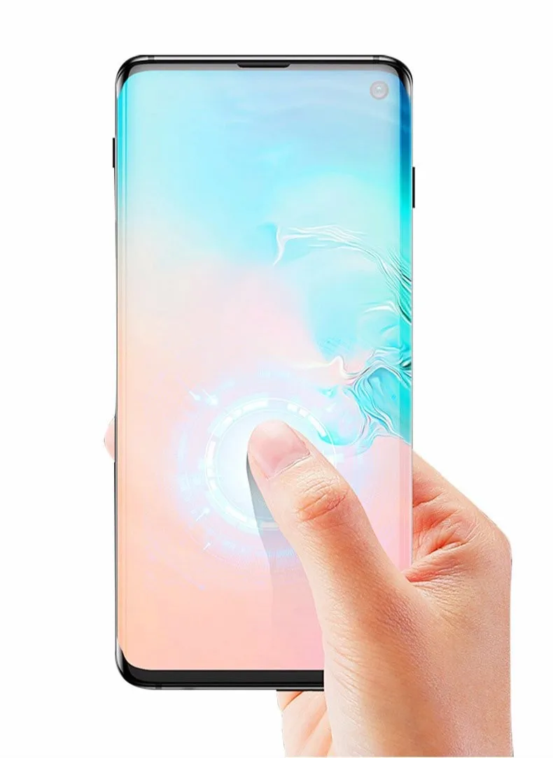 Защитное стекло Premium класса для Samsung Galaxy S20 PLUS, закругленное, с отверстием под отпечаток пальца, черное, на весь экран. Защитное стекло убережёт экран смартфона от трещин и сколов при падении, ударе, неосторожном обращении. Стекло с оптимальной толщиной не тормозит работу сенсора, не искажает цвета дисплея. Покрытие обеспечивает лёгкое скольжение пальцев по поверхности. На стекле не остаются отпечатки, а незначительные загрязнения стираются при помощи мягкой салфетки, входящей в комплект.