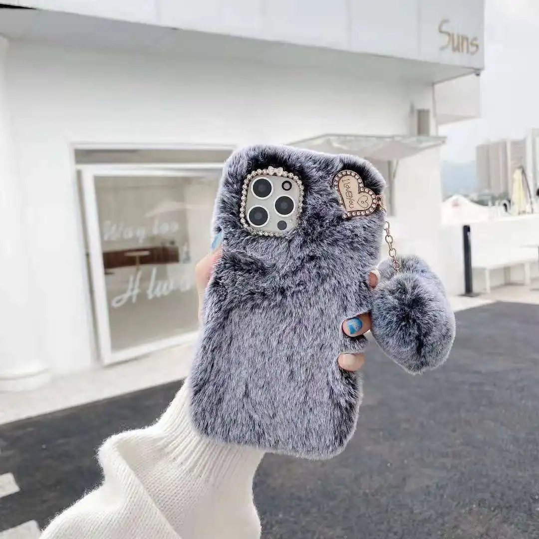 3D милый пушистый плюшевый мягкий меховой Радужный чехол для телефо...