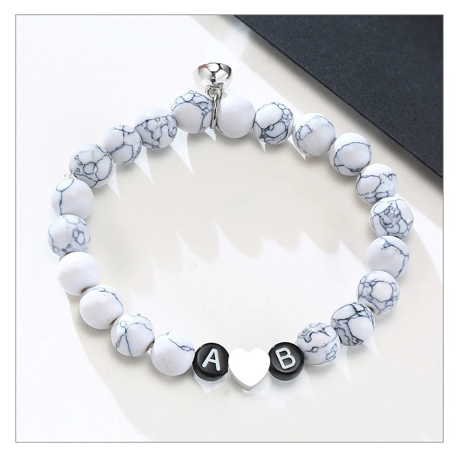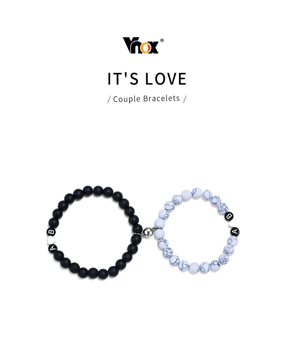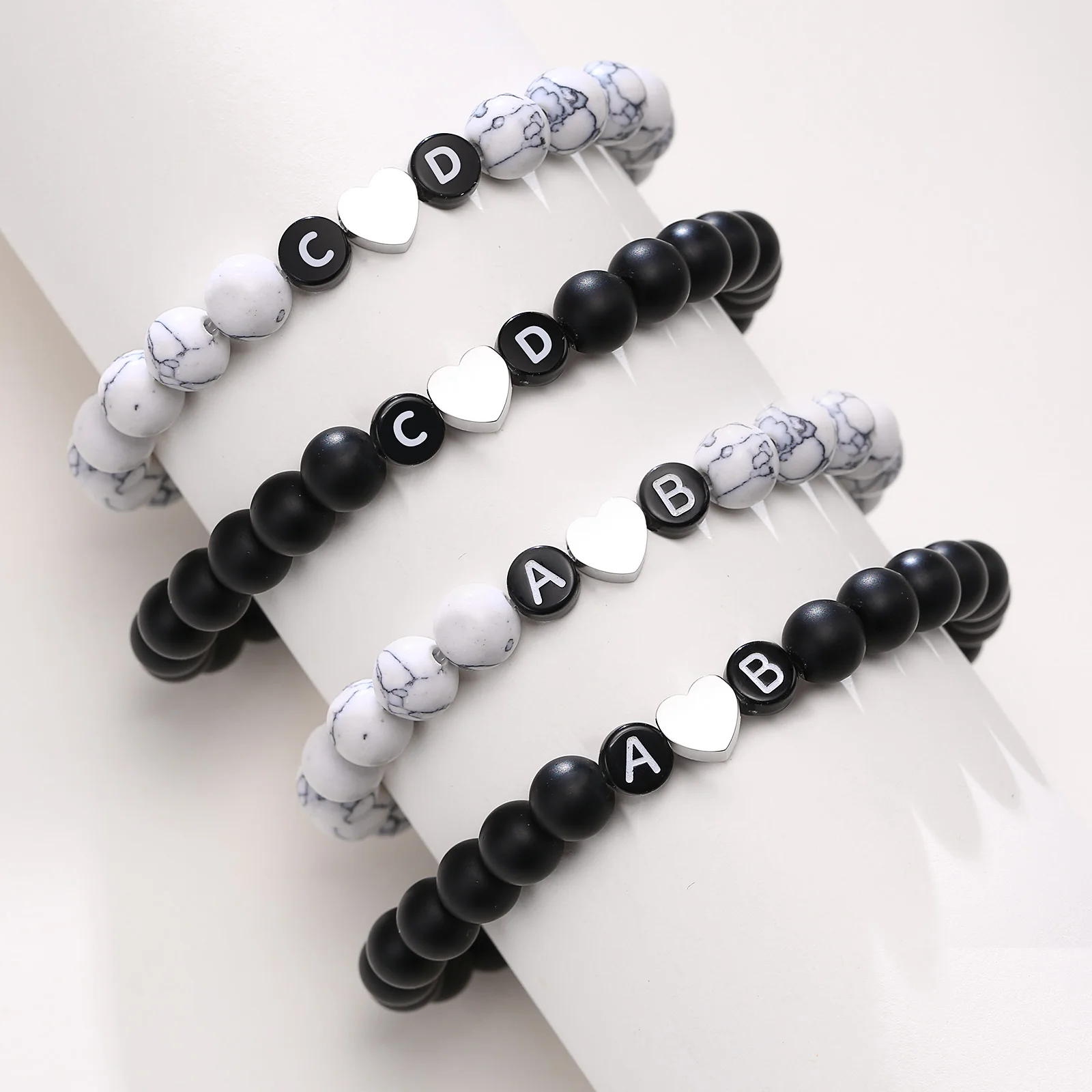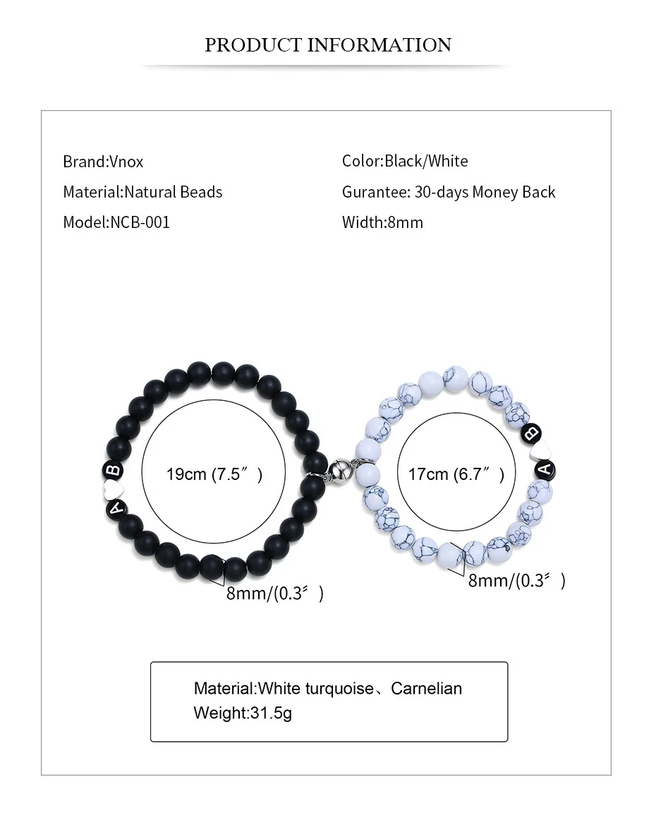 Мужские и женские браслеты Vnox His and Her Beads, браслеты с двумя различными буквами Opiton от A до Z 26, подарок обещания любви