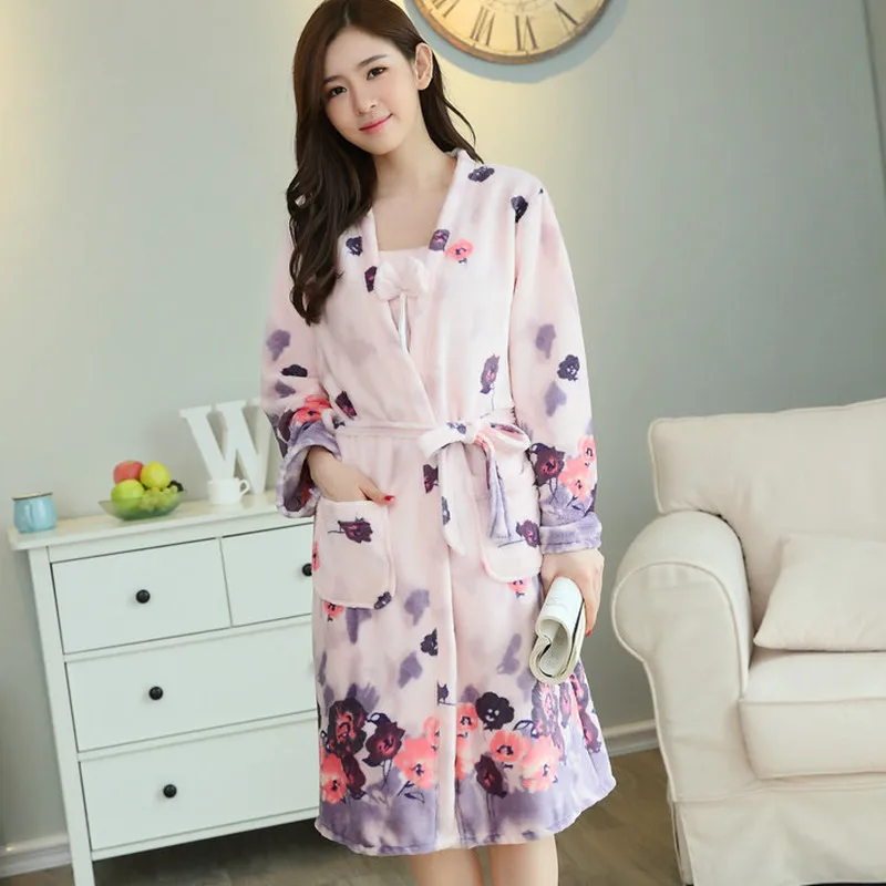 Мягкая Пижама с бантом и длинным рукавом, коралловый кимоно из рунн...