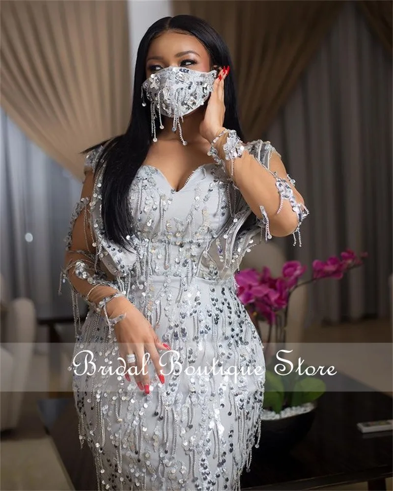 Пикантное вечернее платье Aso Ebi в африканском стиле с V-образным вырезом, платье в нигерийском стиле с длинными рукавами для выпускного вечера, официальное платье с блестками