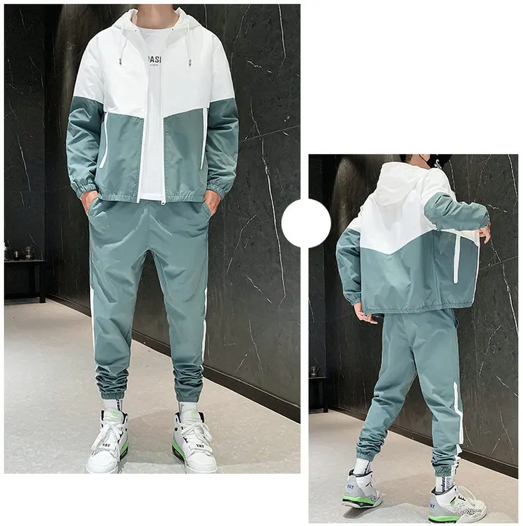 2021 повседневные мужские комплекты в стиле пэчворк в стиле хип-хоп и колледжа, уличная одежда в Корейском стиле из 2 предметов, мужской спортивный костюм для фитнеса, женский китайский Размер