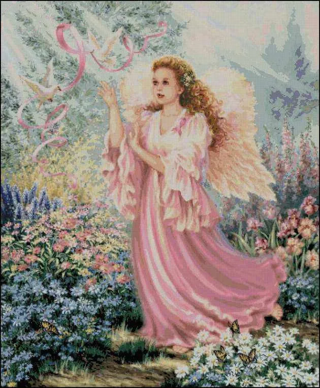 Красивая Девушка Крест с ангелами стежка Наборы масляной живописи р...