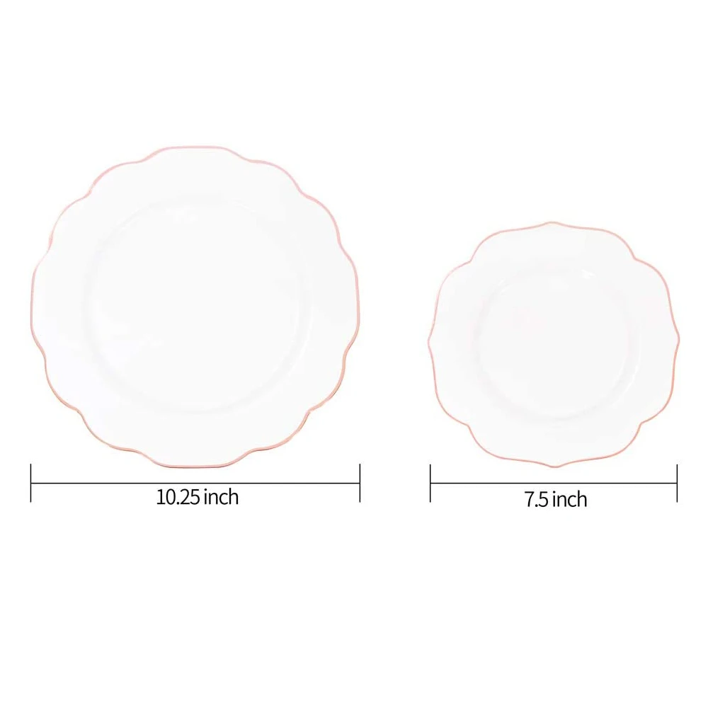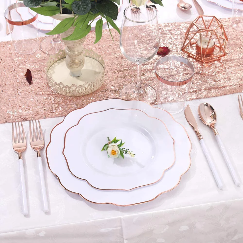 Цвет: розовое золотоМатериал: пищевой пластикРазмер: 7,5 дюйма, 10,25 дюймаКоличество: 20 штукПрименение: подходит для свадеб, Рождества, Дня благодарения, дней рождения и других крупных мероприятий.Характеристики: можно использовать повторно