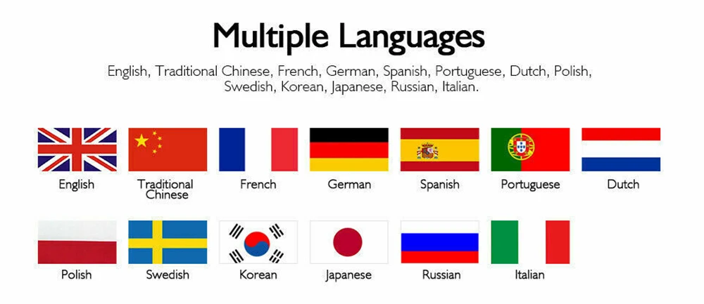 Support language 2Polish, Swedish, Korean, Japanese, Russian, Italian