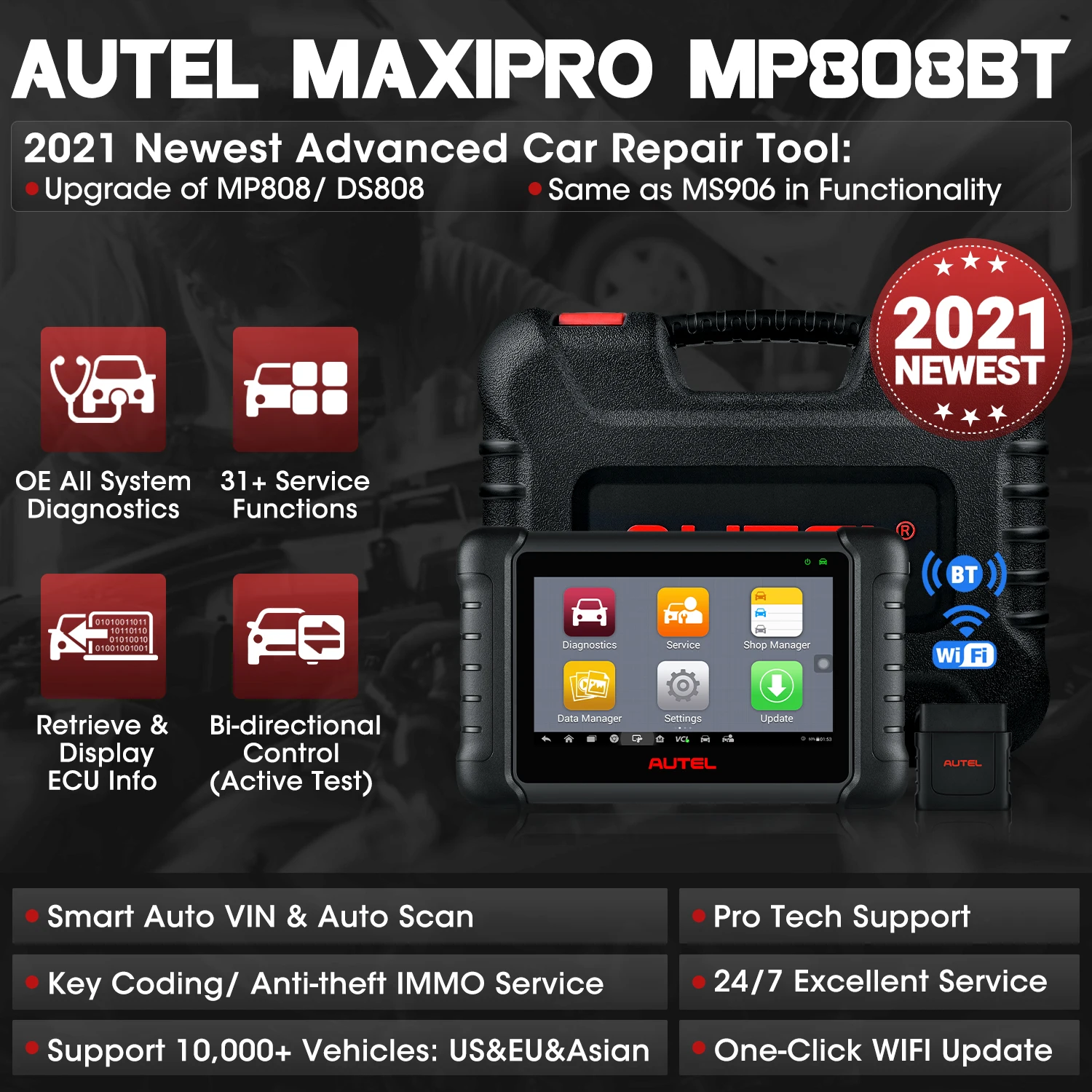 Инструмент диагностики Autel MaxiPRO MP808BT, профессиональный сканер OBD2, обновленный инструмент диагностики MP808 MP808K DS808K OE-уровня OBDII