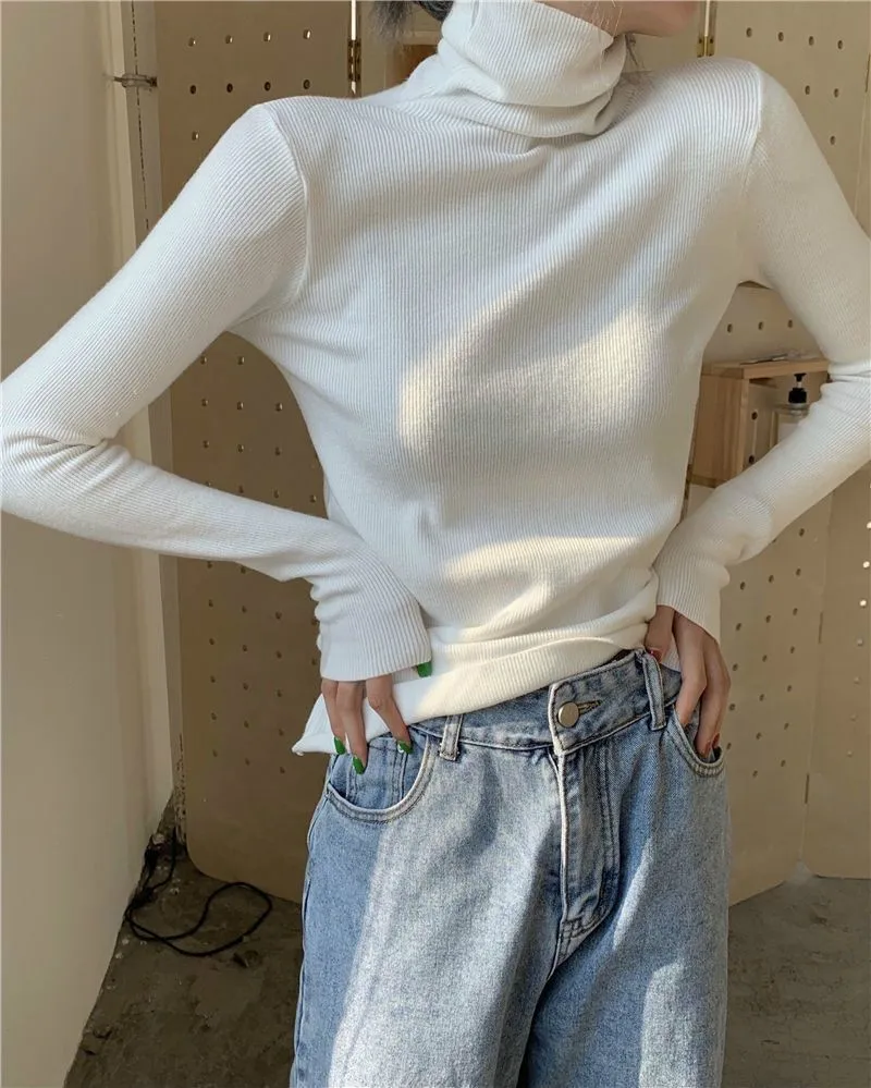 Осень-зима 2021, женские свитера с высоким воротником, тонкий пулов...