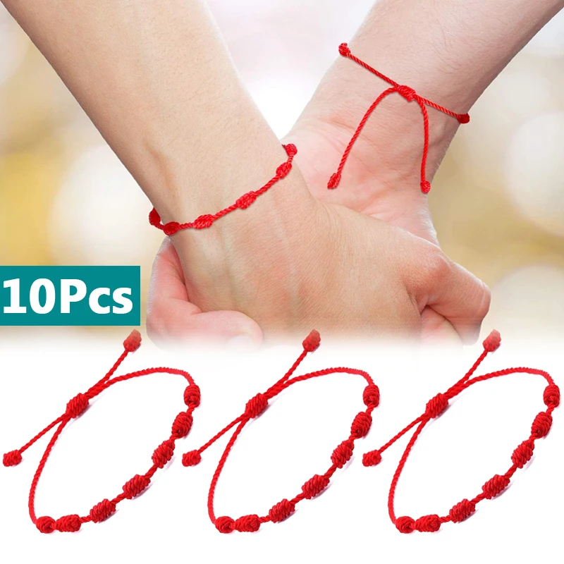 10 шт. 7 узлов красные браслеты на ремне для защиты удачи амулет для успеха процветания ручной работы браслеты на удачу