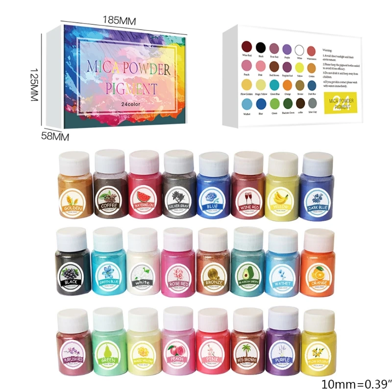 24 цвета слюды порошок для эпоксидной смолы для DIY мыло делая Ванна бомба свечи подходит для смолы искусства и ремесла проектовOOTDTYОсобенности на 100% абсолютно новый и высокого качестваНаш Премиум-порошок слюды-это действительно универсальный краситель, который вы можете использовать в производстве мыла, эпоксидной смолы, блеска для губ, нейл-арта, банных бомб, полимерной глины, слизи, освежителя автомобилей и многого другого.Наш порошок слюды поставляется в герметичном встряхивании и Налейте банки для вашего удобства.Вы получите красивый Радужный набор из синего, зеленого, фиолетового, розового и желтого цветов.Все наши цвета-это косметический класс и безопасность глаз, губ и кожи. Вы можете использовать их, чтобы сделать свои собственные мерцающие тени для век, бальзам для губ или масло для тела.Они не кровоточат и не выцветают, что делает их идеальными для мыльной окраски.Спецификация: Материал: перламутровый порошокРазмер упаковочной коробки: 18.5x12.5x5.8 см/7.28x4.92x2.28 дюймовПосылка включает в себя: 1 Набор 24 цветов слюды порошок для эпоксидной смолыПримечание: Цена по этой ссылке не включает цену коробки из ПВХ. Если вам нужна коробка, вам нужно купить весь комплект, плюс 1 юань для каждой коробки