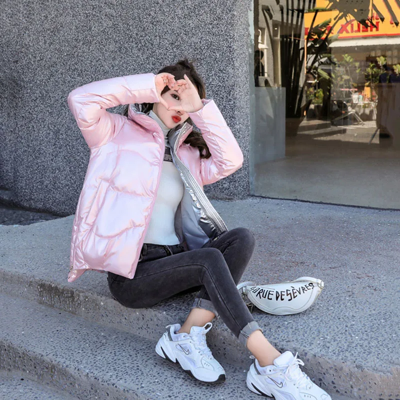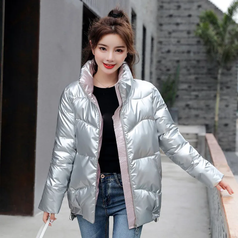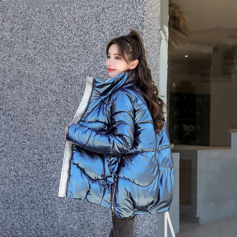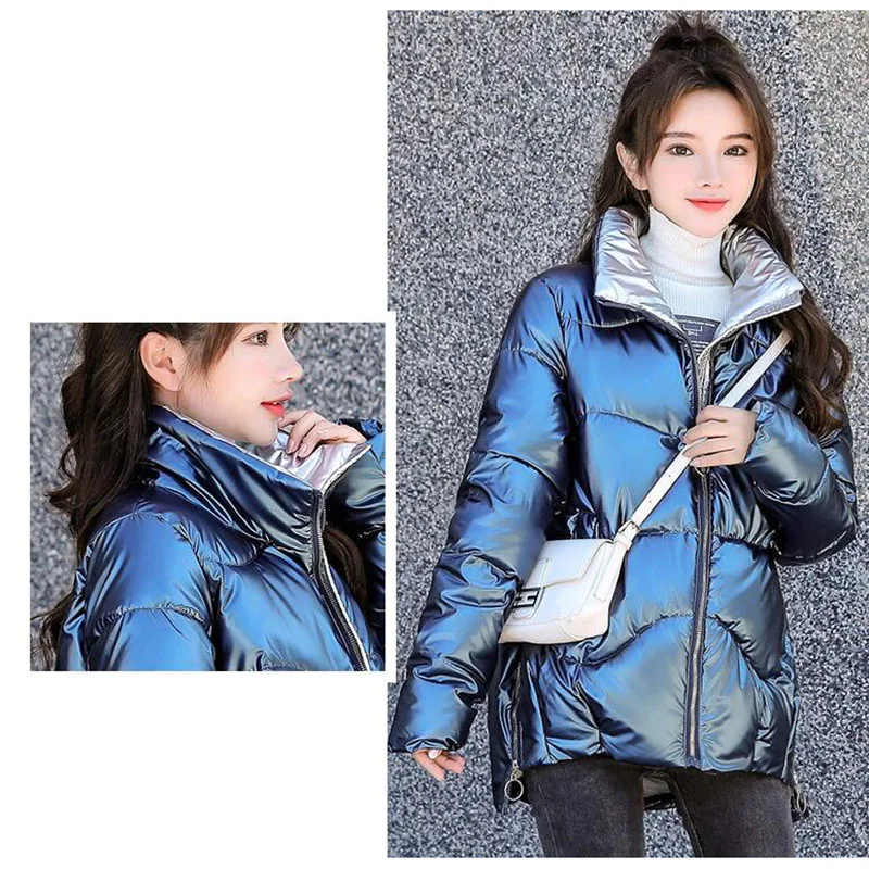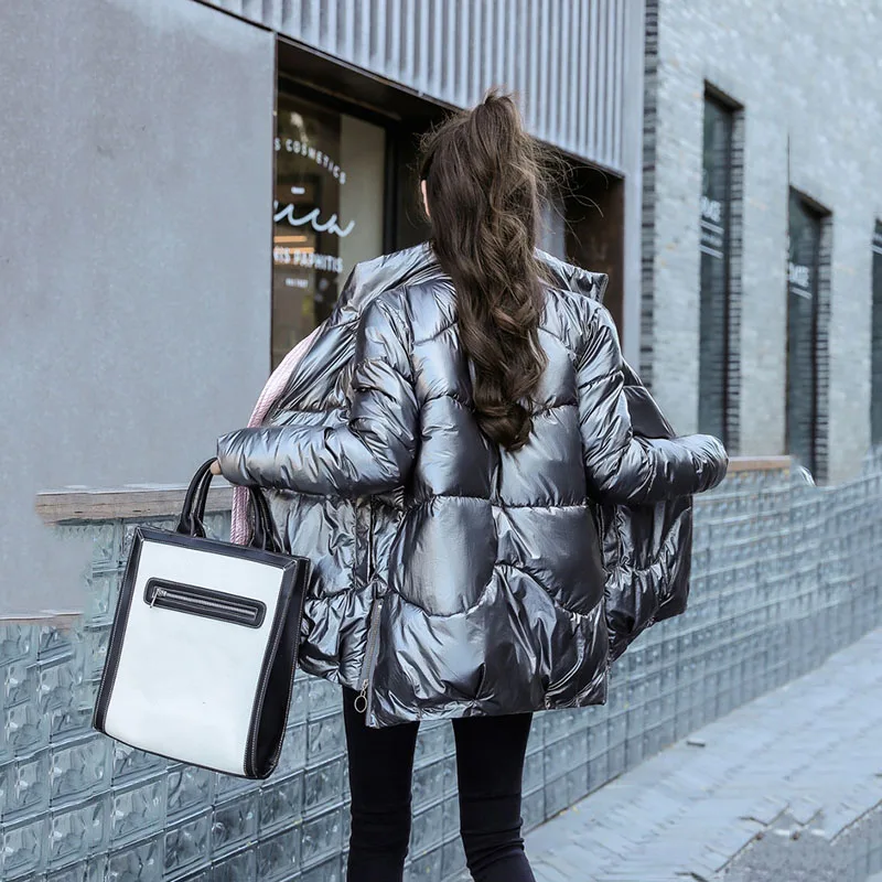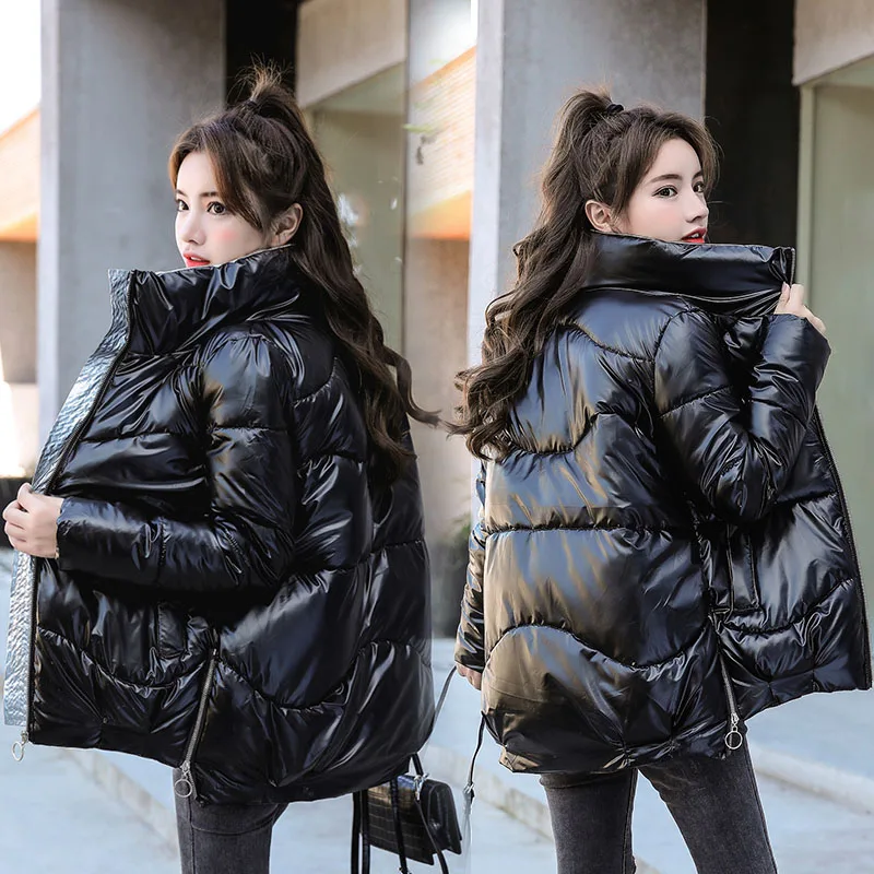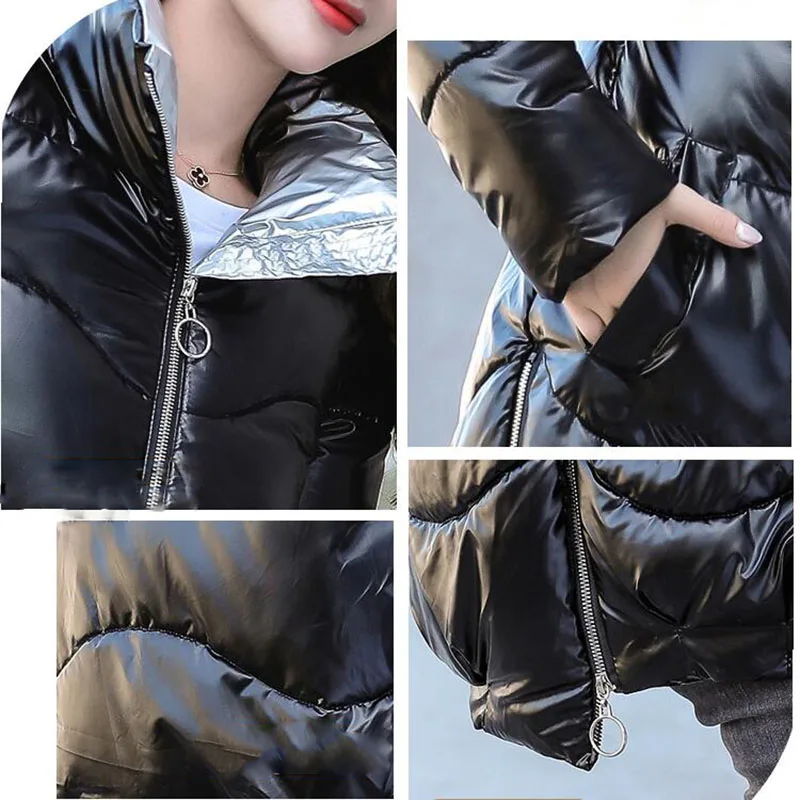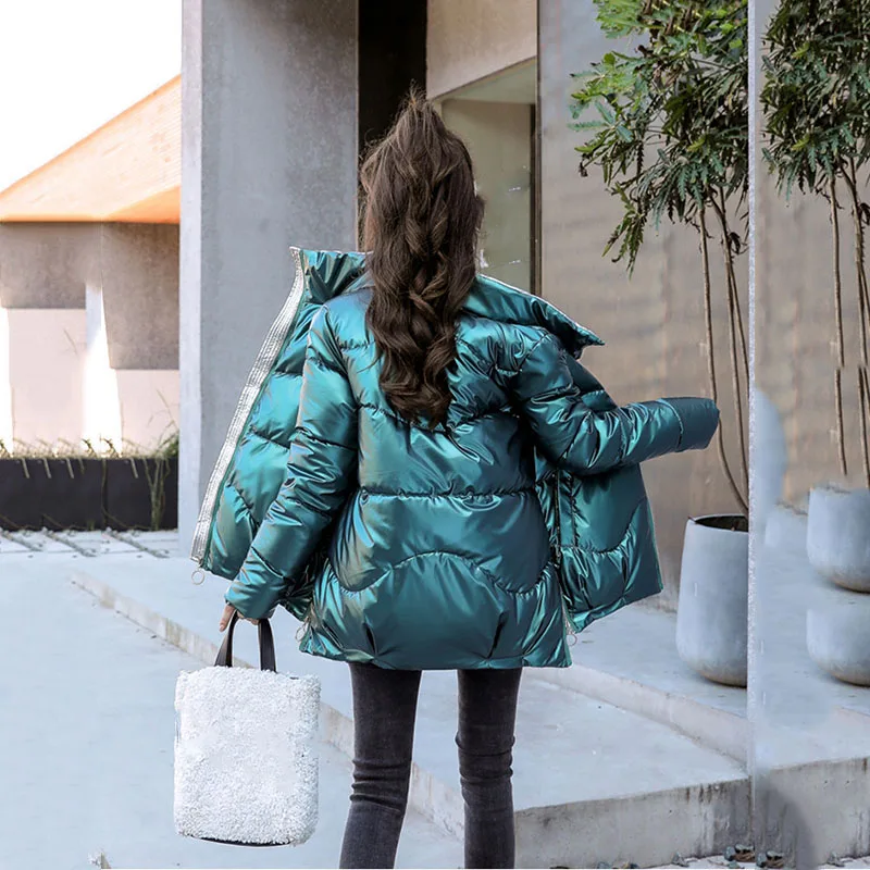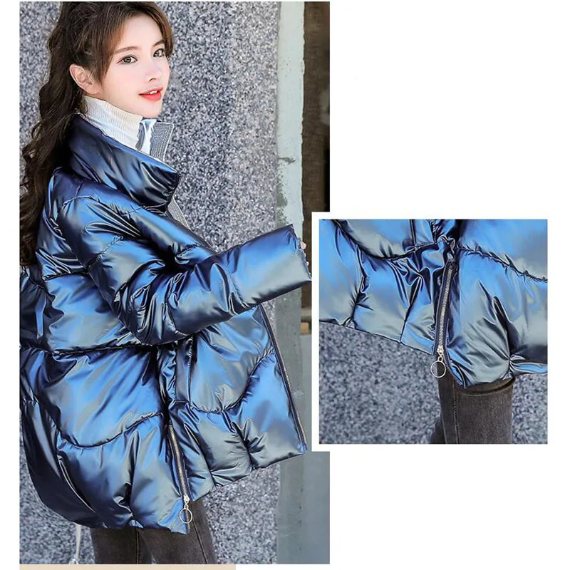 Зимняя куртка, женские толстые парки, Повседневная Свободная пуховая хлопковая куртка, теплая парка с хлопковой подкладкой, женская модная блестящая женская парка
