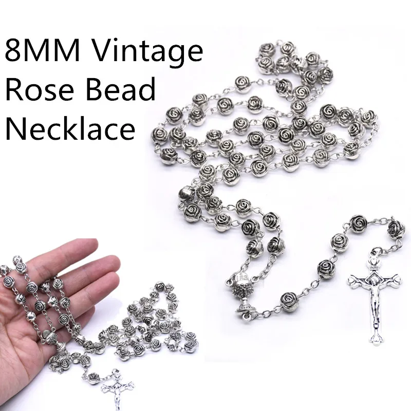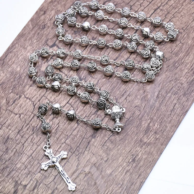 Женская цепочка ручной работы с крестом и розам, ожерелье унисекс с...