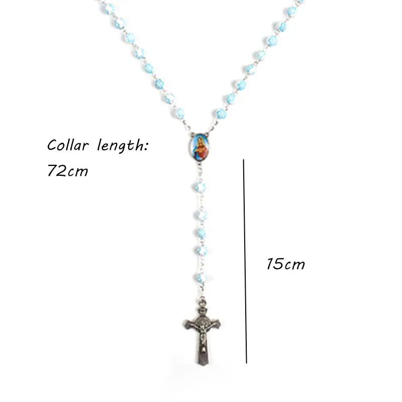 Католические Четки квадратные синие стеклянные бусины ожерелье Дева...