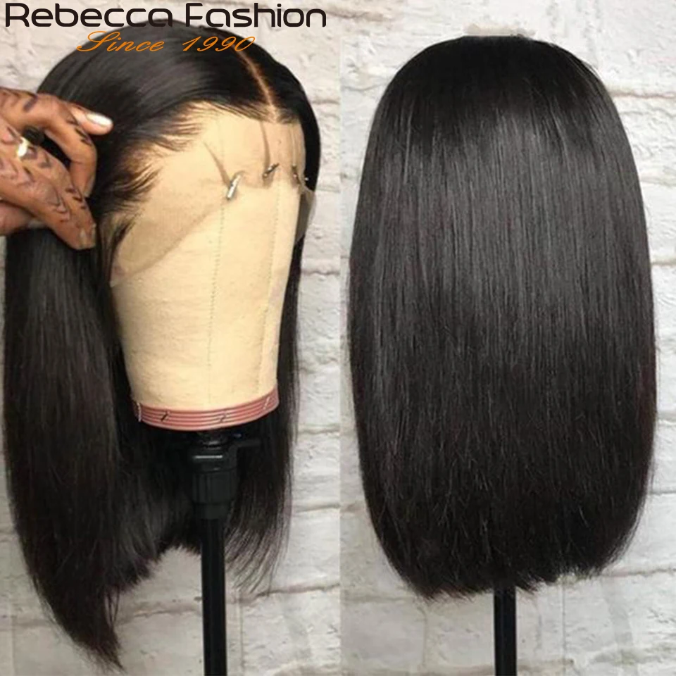 Парик Боб Blunt, бразильские кружевные передние парики из человеческих волос, прямые парики боб для женщин, парик с Реми 4x4, кружевная застежка, Боб
