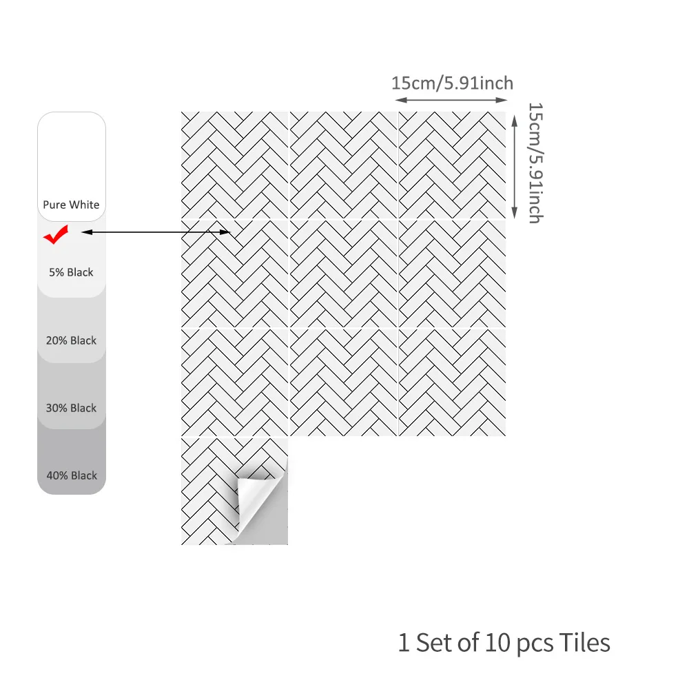 Виниловая водостойкая плитка, белая Геометрическая, ПВХ наклейка на стену, 1520 см