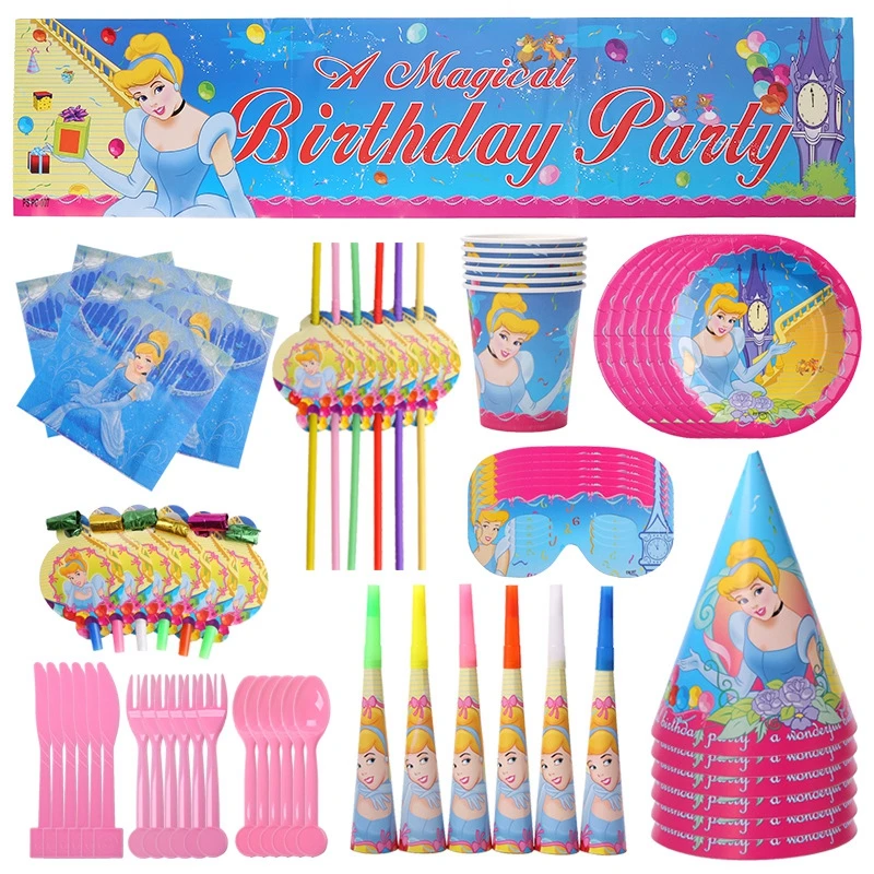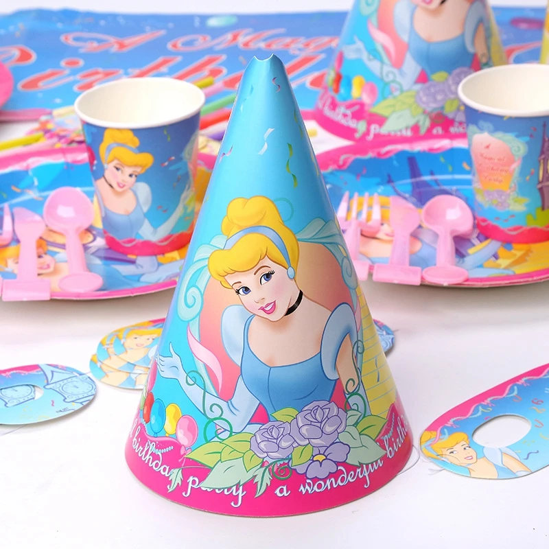 Принцесса Золушка, сувенир для девушек на день рождения, посуда для вечевечерние Хань, одноразовая бумажная чашка, салфетка, флаг, соломенная маска, шляпа, принадлежности