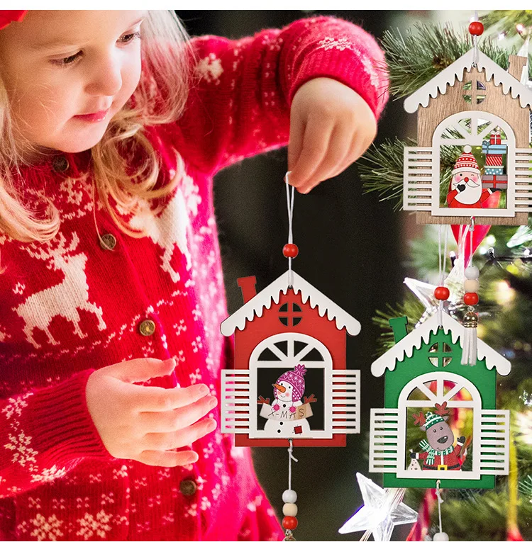 2021 деревянный Рождественский дом, искусственные подвески для рожд...
