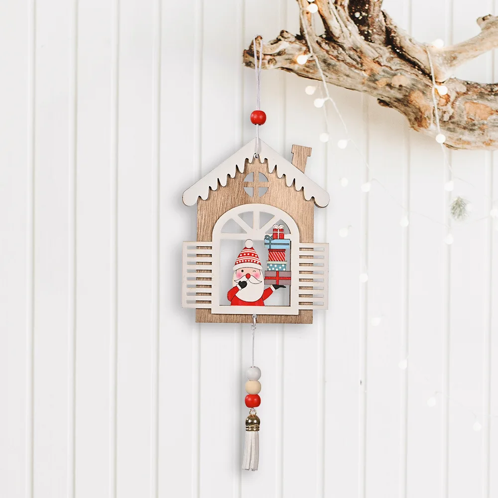 Рождественские украшения, деревянный маленький дом, подвеска с кист...