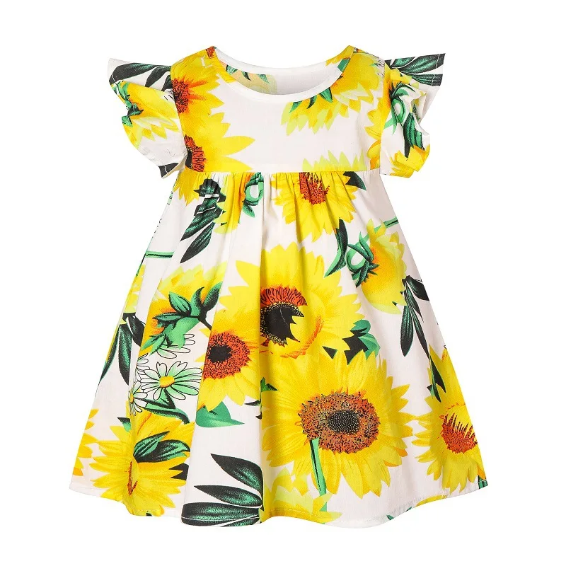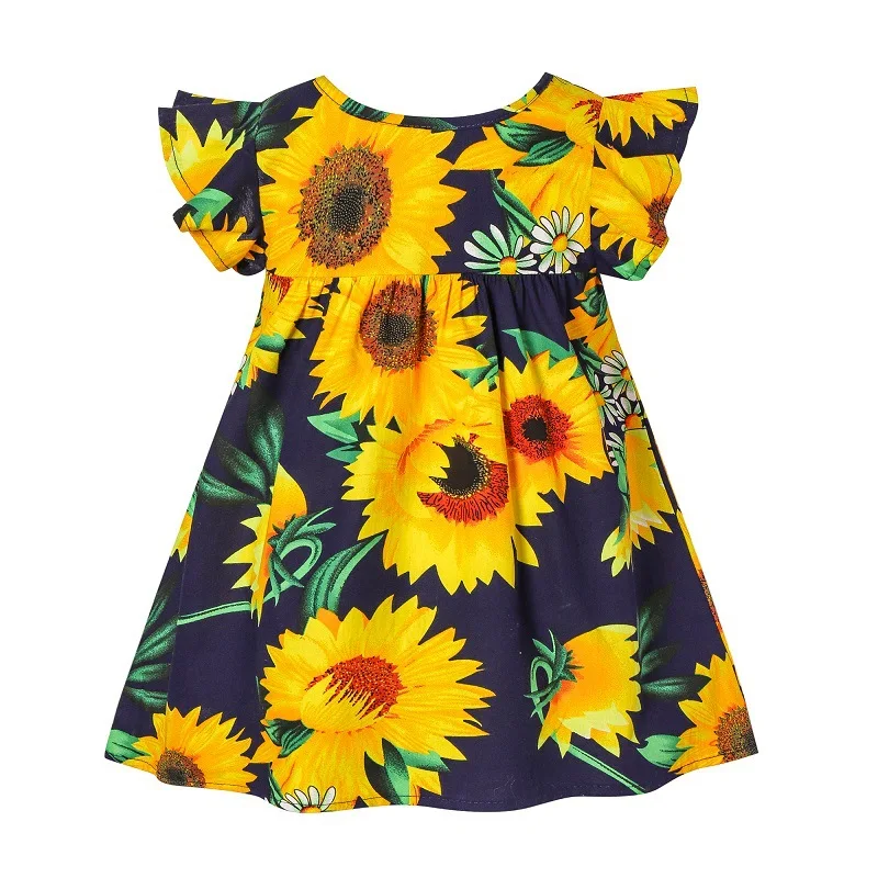 Новинка 2021, летние повседневные платья для маленьких девочек, одежда, однотонное платье с рукавами-мушками и бантом, одежда, платья, платье принцессы, 5,0