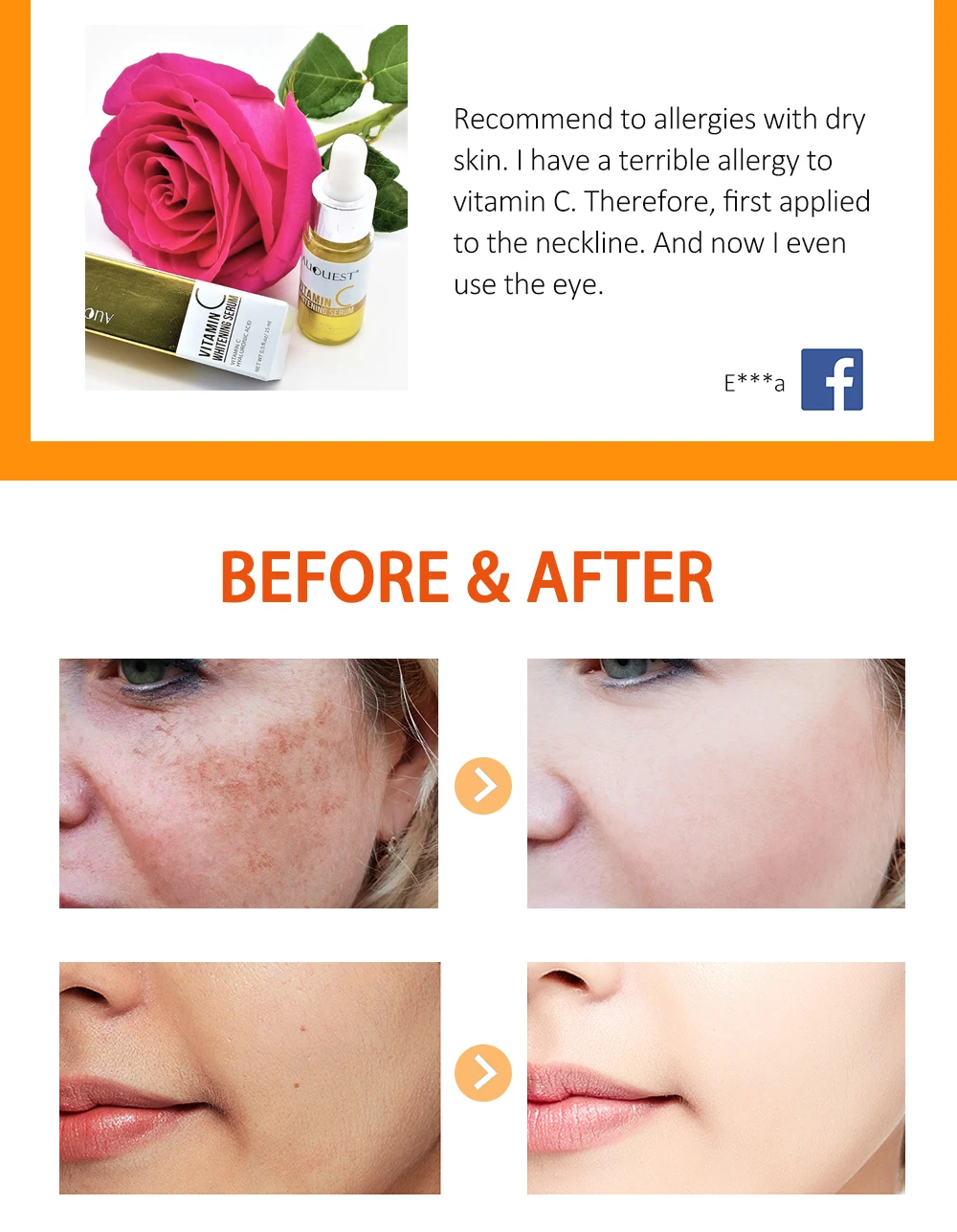 1. Для чувствительной кожи, рекомендуется сделать тест на аллергию на задней части уха перед использованием продукта. Используйте его, если не происходит никаких побочных эффектов.