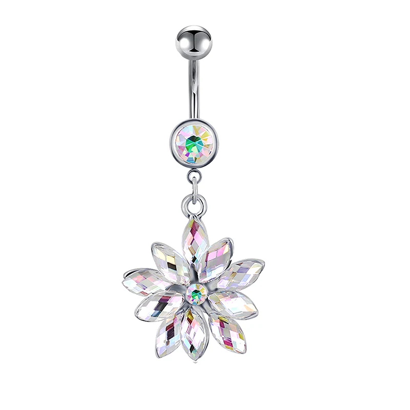 Женское кольцо для пупка из нержавеющей стали, с подвеской-кристаллом