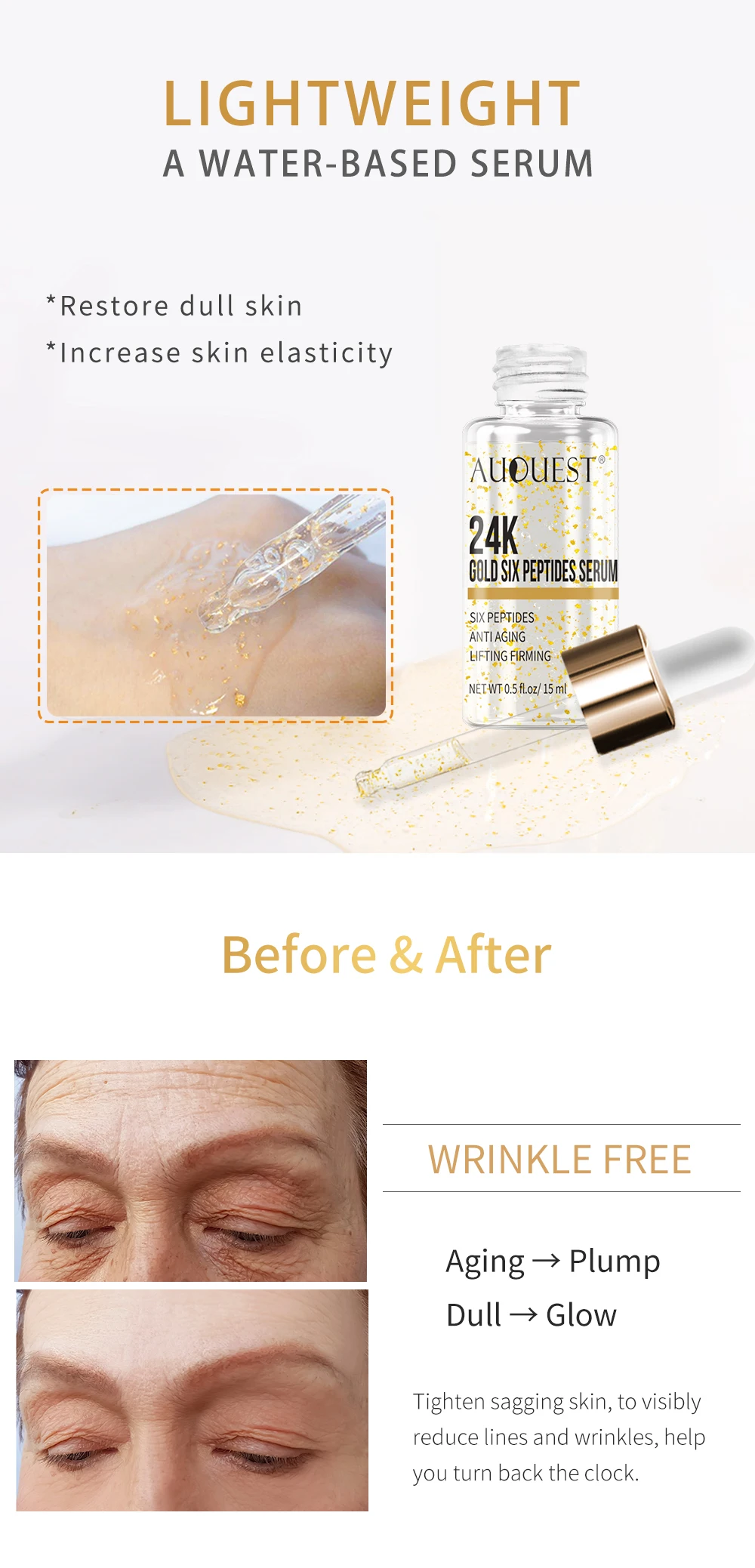 AuQuest 24K Золотая Сыворотка для лица Уход за кожей против морщин увлажняющая отбеливающая Косметика Уход за кожей лица 15 мл