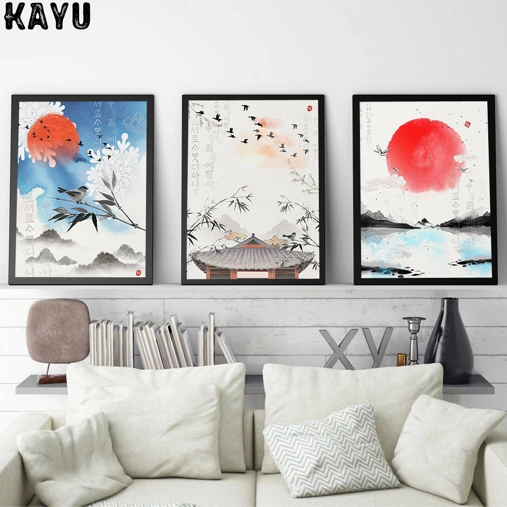 Абстрактная живопись, пейзаж, настенное искусство, винтажная живопись, холст, Художественная печать, Азиатский Декор для дома, корейский горы, вода, пейзаж, плакат