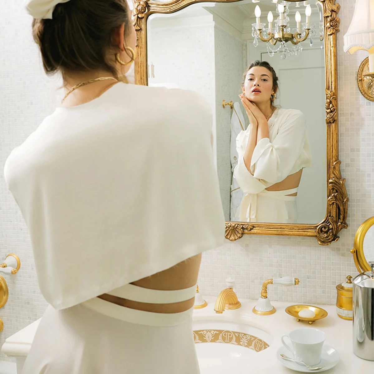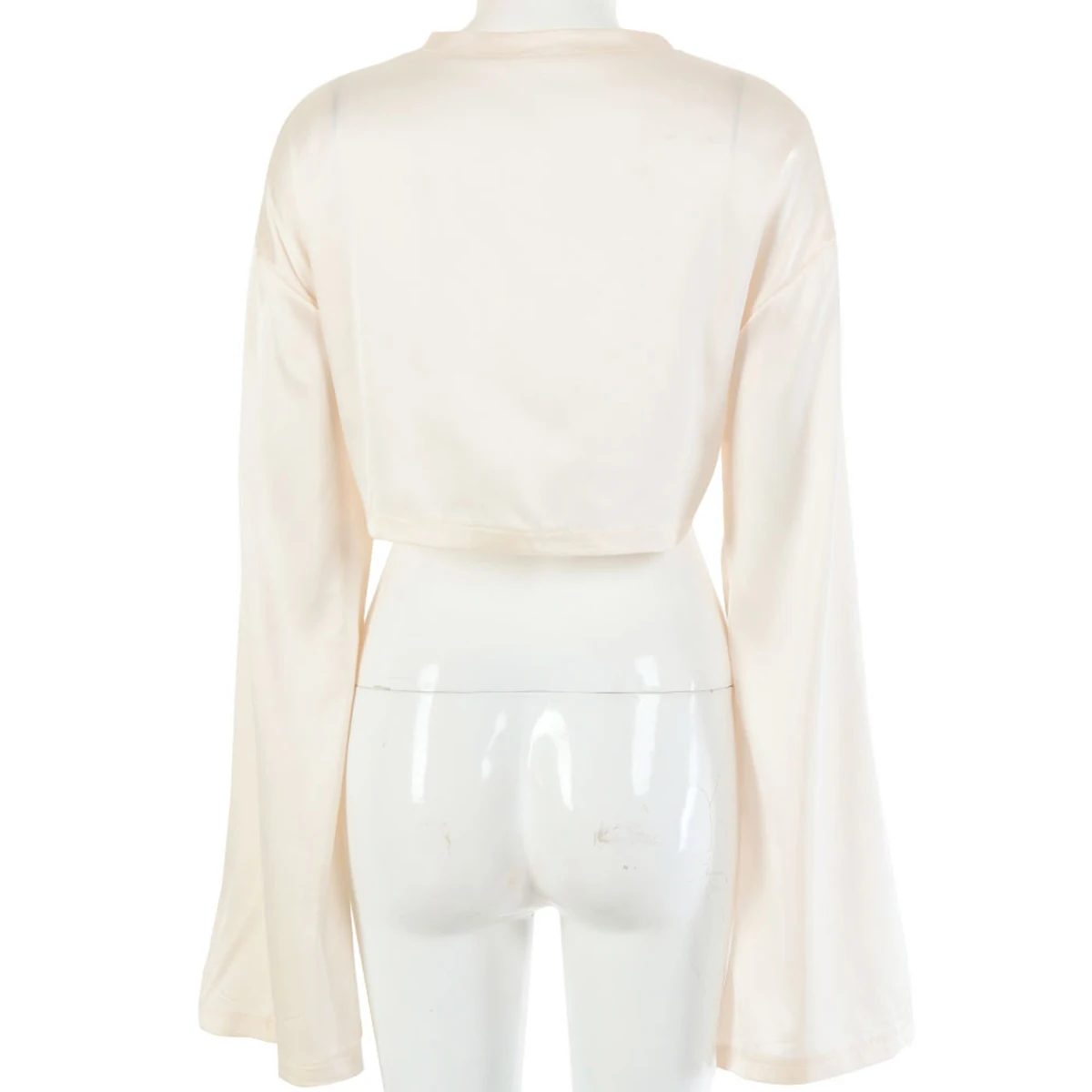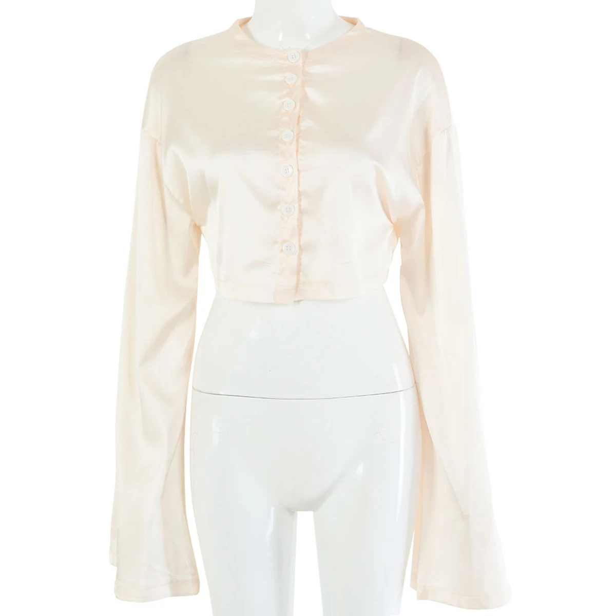 Комплект из двух предметов женский атласный, элегантный укороченный...