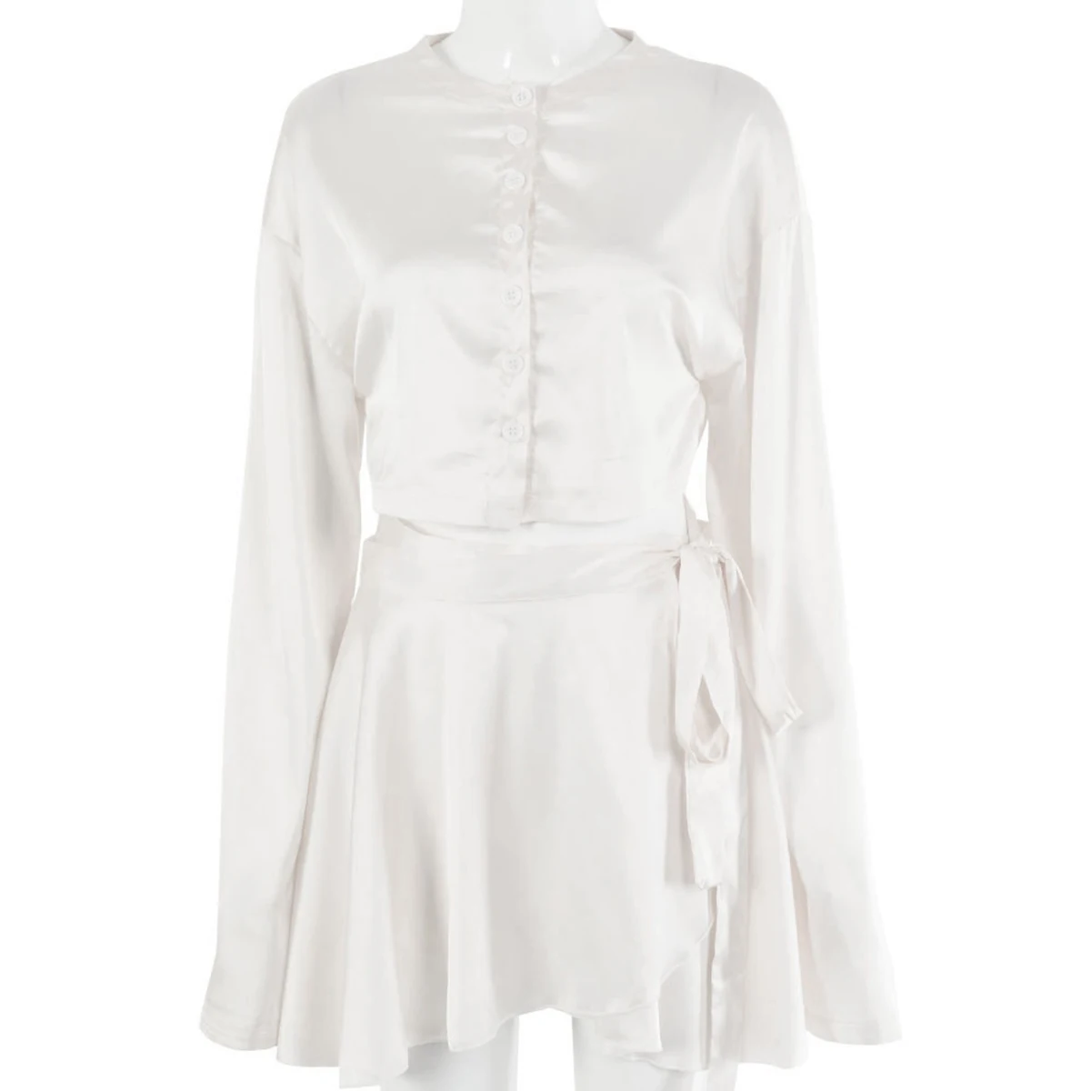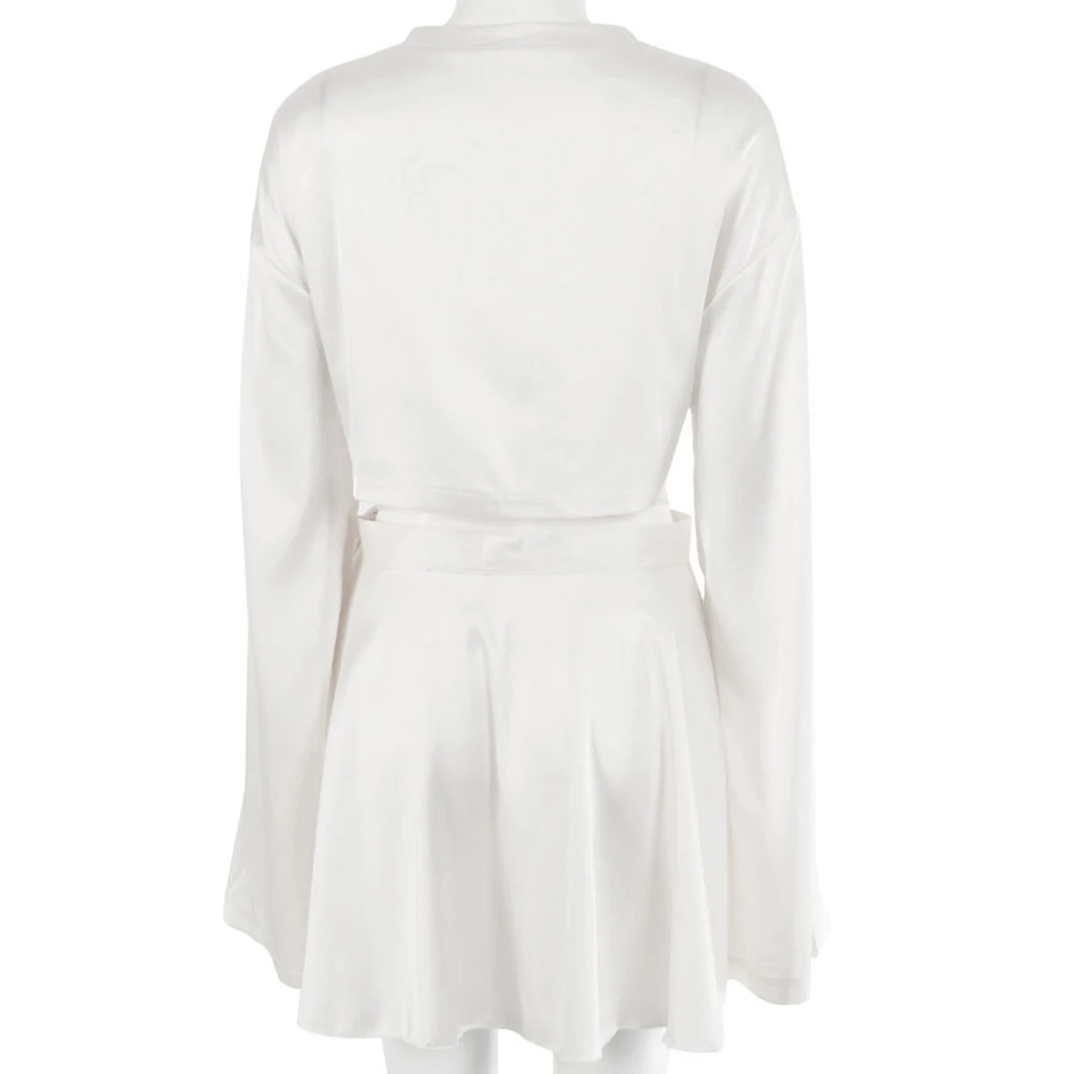 Женский атласный комплект из 2 предметов, белый элегантный короткий...