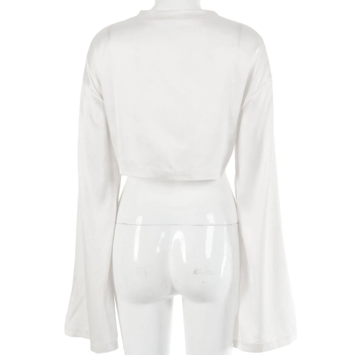 Женский комплект из 2 предметов, короткий топ с длинными рукавами-ф...