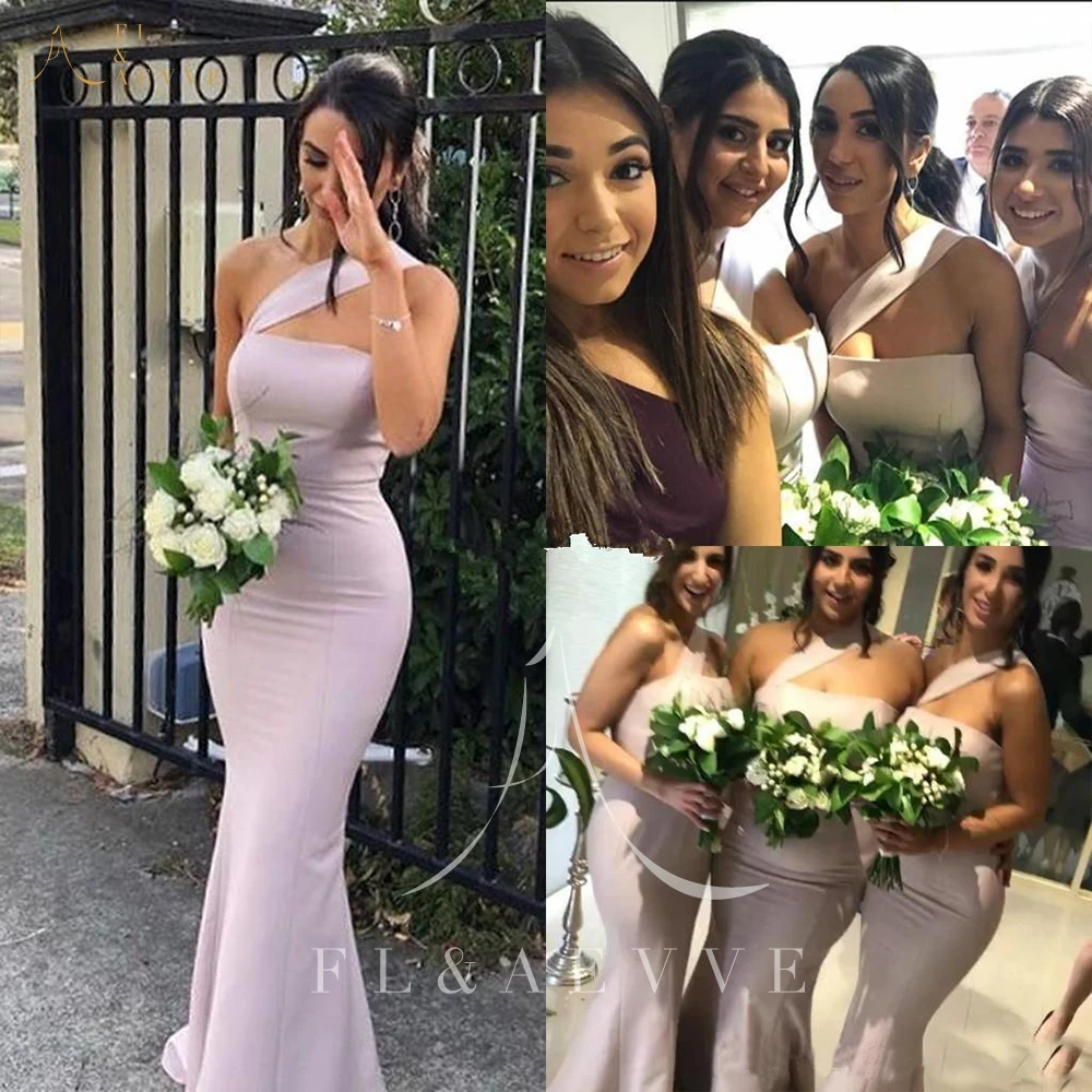 Модные светло-розовые атласные платья с лямкой на шее для подружки ...