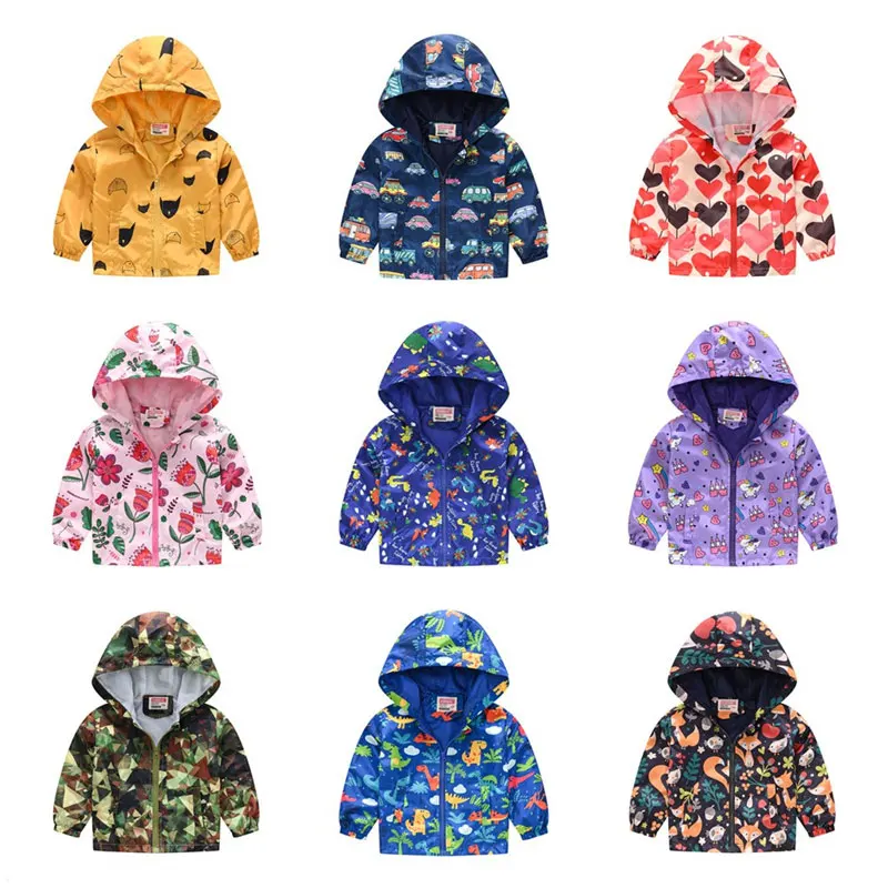 Куртка с капюшоном для мальчиков и девочек, осенняя ветрозащитная к...
