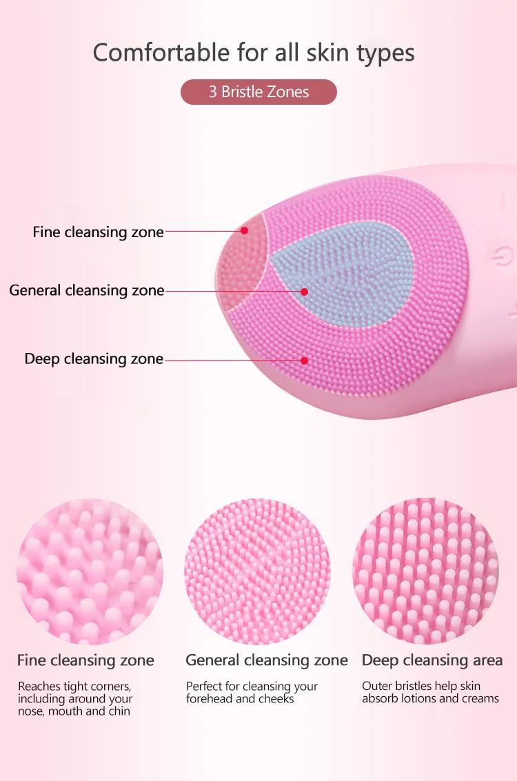 • 4 скорости в соответствии с вашим типом кожи• 3 зоны щетины для специализированного очищения• 2-в-1 насадка для зубных щеток очищает и массирует• Изготовлен из пищевого силикона и АБС-пластика