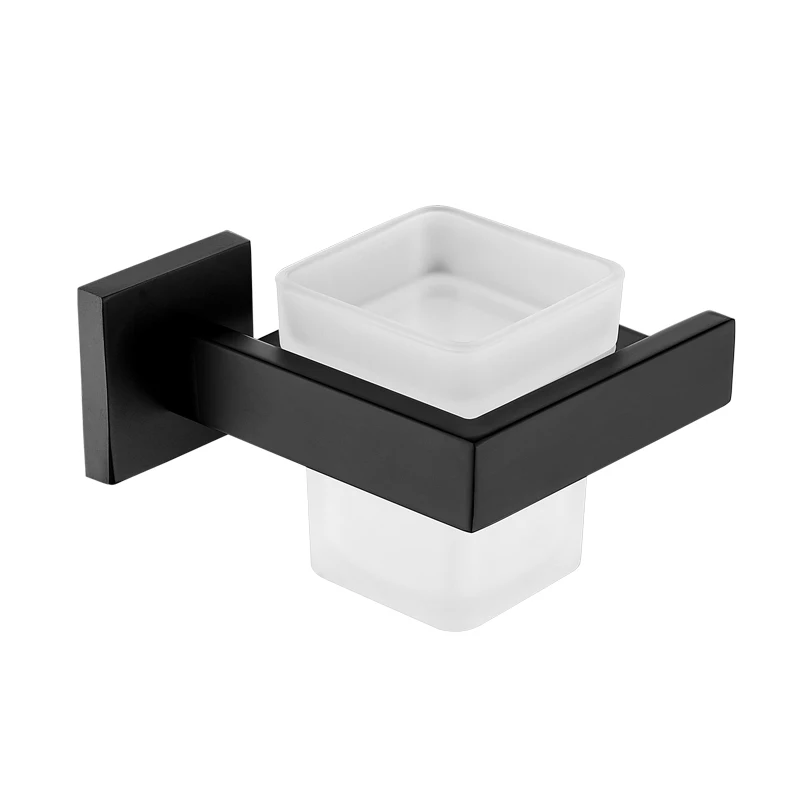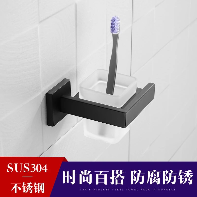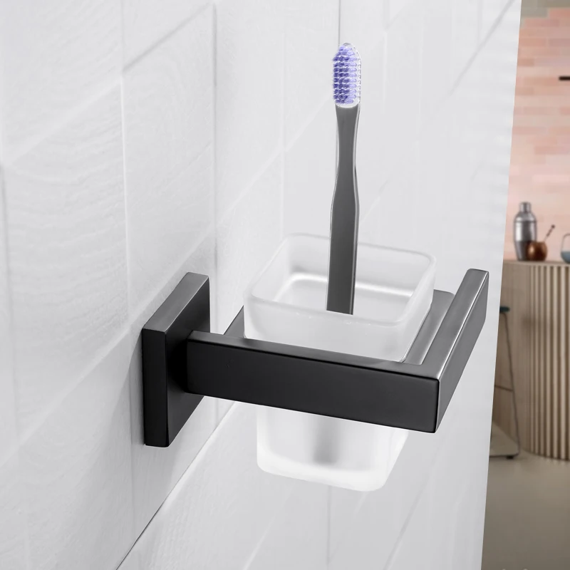 Матовый черный квадратный держатель для зубной щетки, стакан для зубной щетки из нержавеющей стали и подстаканник, настенные аксессуары для ванной комнаты