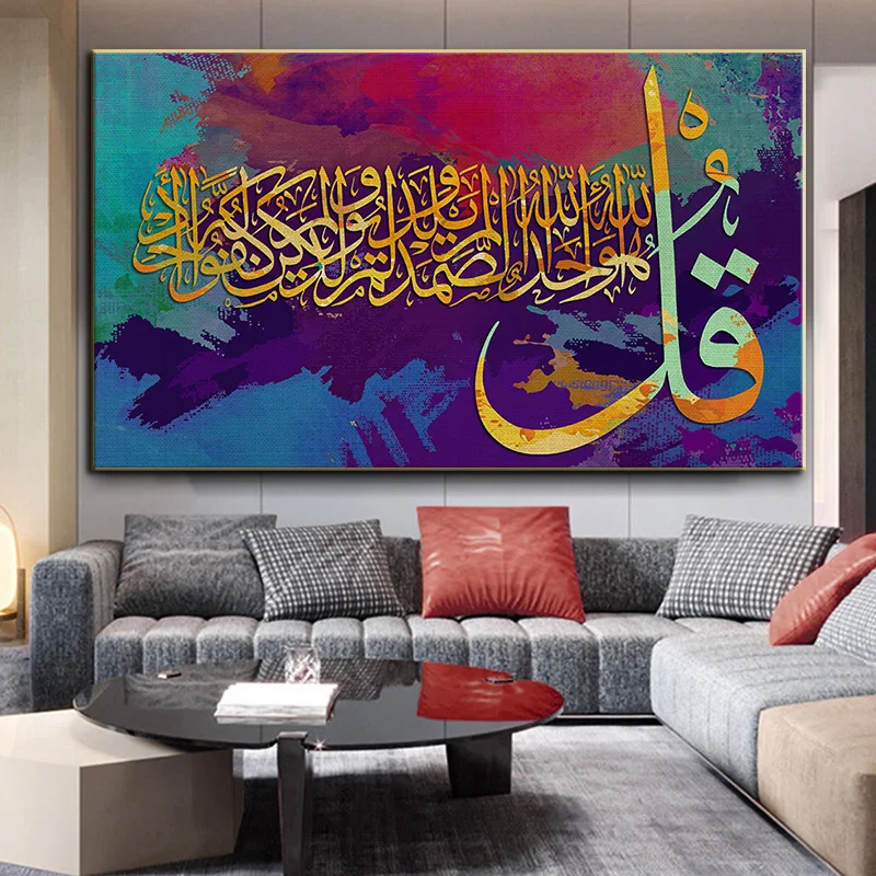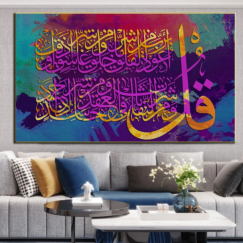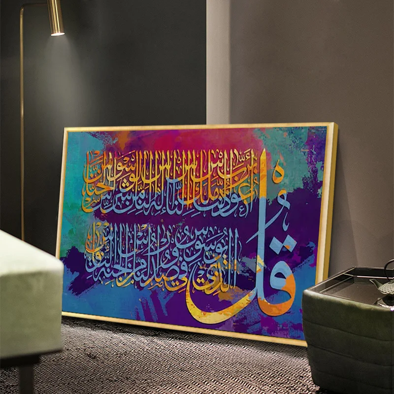 Мусульманская настенная Картина на холсте, искусство, каллиграфия, мусульманский религиозный постер и принты, современное красочное искусство, картина, Декор
