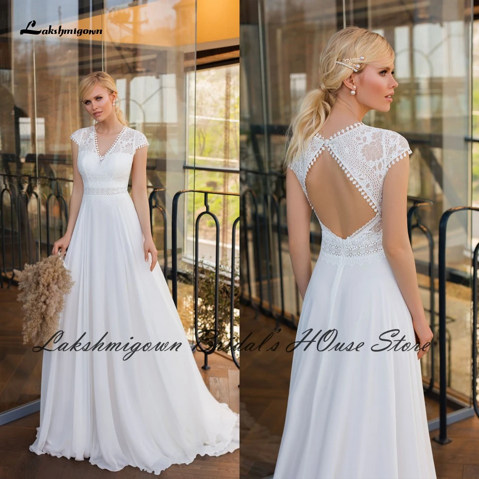 Lakshmigown простое свадебное платье, белое шифоновое длинное пляжное свадебное платье 2021, кружевной лиф с открытой спиной, богемные платья для чеков вечерние Ринок