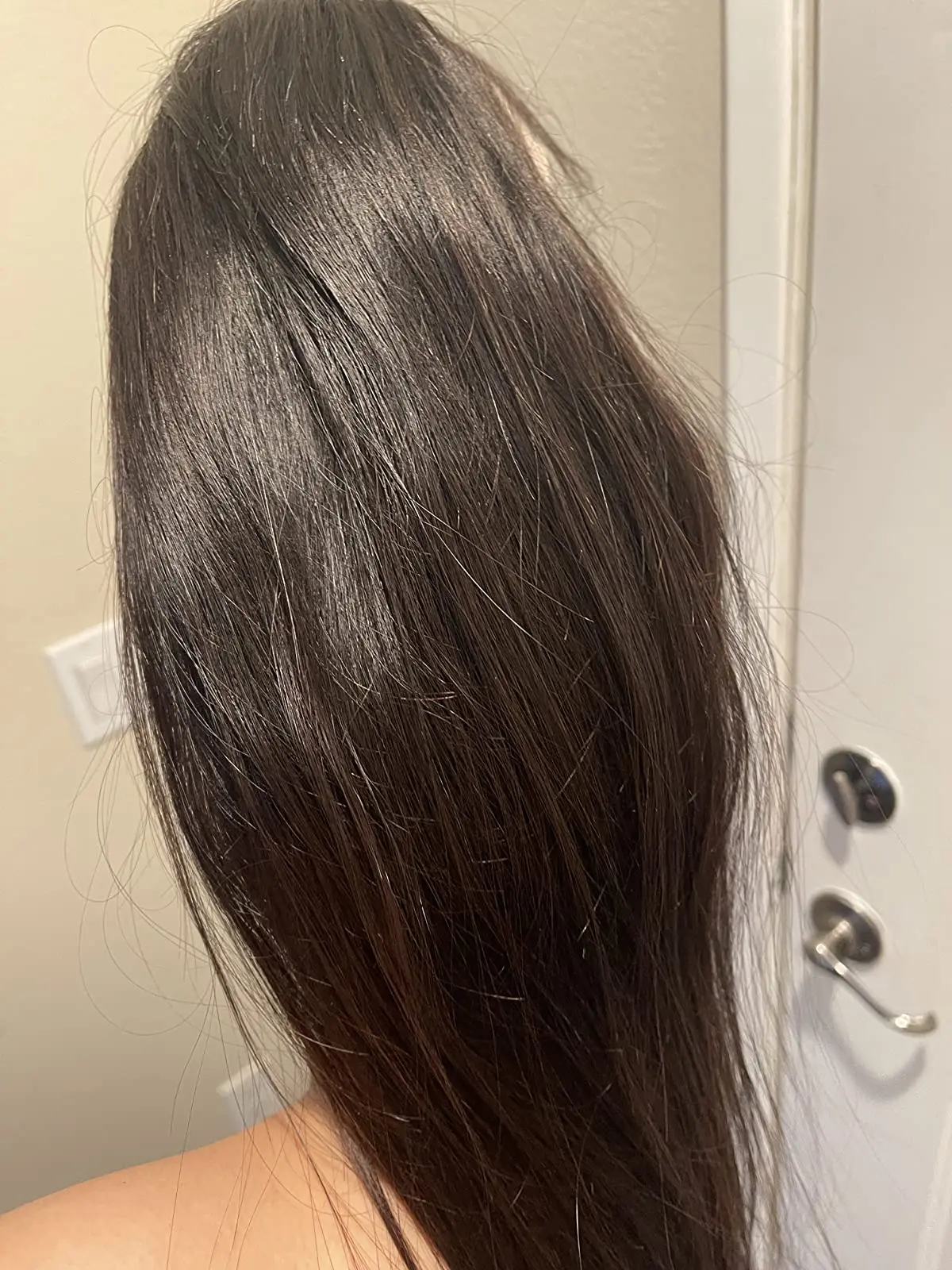 Волосы быстро появились и шелковистые, гладкие и полные, но не громоздкие получили много комплиментов на этих волосах!